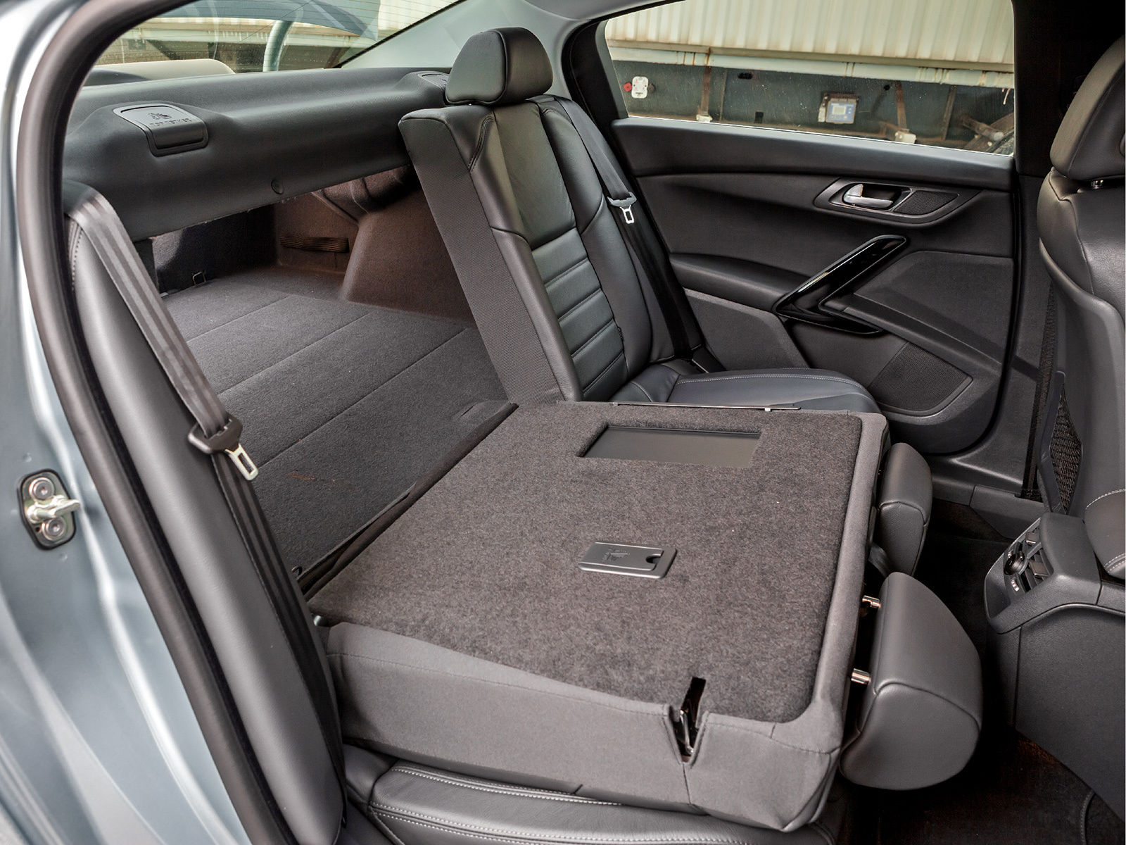 Но если копнуть поглубже… В то время как верхушка передней панели Kia отделана кожей, низ отлит из жёсткого пластика. Под крышкой перчаточного ящика обычный пластиковый лоток, а ещё у нашей Оптимы в версии Prestige (1 239 900 рублей) электрифицированным оказалось только водительское кресло, в то время как у «пятьсот восьмого» за 1 164 000 рублей — оба. Да и сам «стул» более аморфный, чем во французской машине. Но сильнее всего будут разочарованы задние пассажиры. Это хорошо, что двери здесь открываются на больший угол, а дверной проём шире, но сидеть на заднем ряду Kia неудобно из-за излишне отлогой спинки дивана. Голову приходится держать на весу.