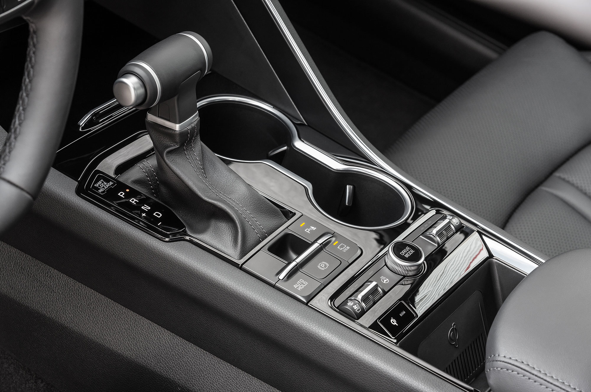 Kia педалирует образ глобальной модели: вопреки привычным представлениям о производственной оптимизации, K5 попал в Россию с оригинальным силовым агрегатом. Атмосферник Smartstream 2.5 относится к тому же семейству Theta III, что и «четвёрка» Сонаты, но развивает 194 л.с. вместо 180 благодаря добавке непосредственного впрыска. В новом «автомате» собственной разработки HMG не шесть ступеней, а восемь. Camry 2.5 (181 л.с.) восьмидиапазонной коробки пока не дождалась.