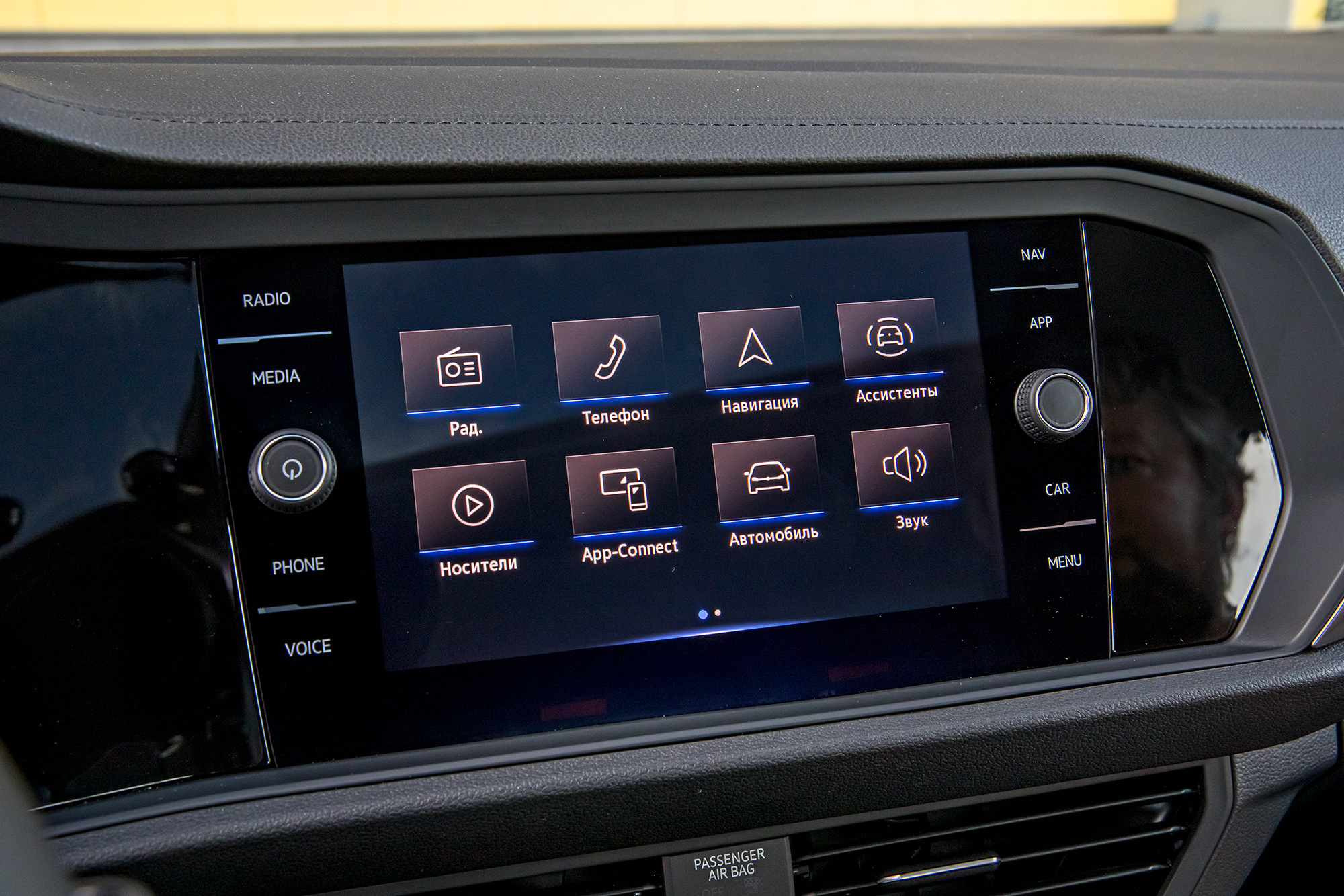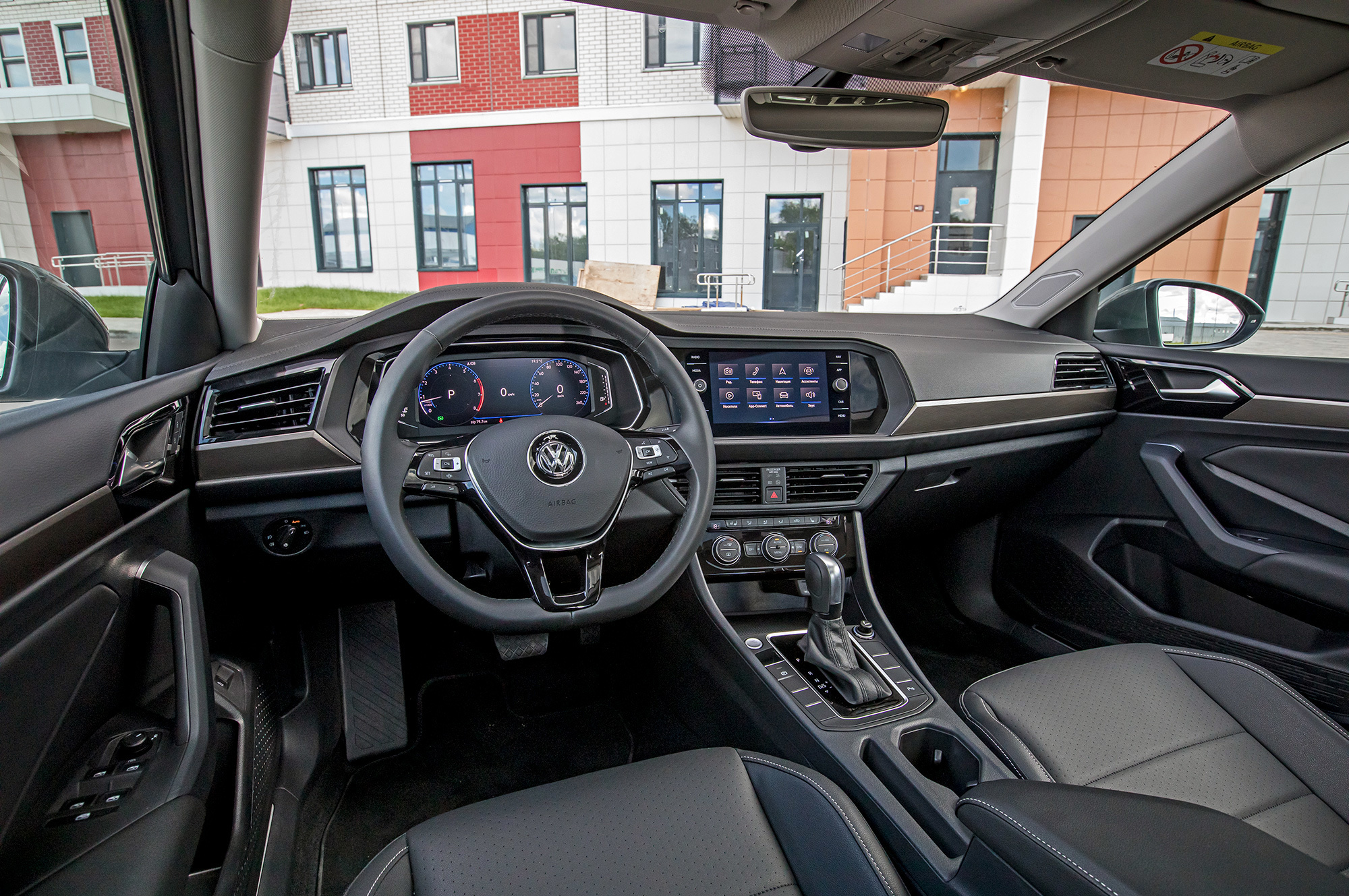 Наружные дверные ручки Джетты сами ложатся в ладонь, а выверенные годами фольксвагеновские лекала взаимного расположения руля, педалей и сиденья использованы без купюр. Хороша передняя панель, приобнимающая водителя восьмидюймовым экраном медиасистемы, соседствующим с электронным приборным щитком. Снова техно! Правда, графика инструментария скудна. Есть всего три варианта оформления плюс десяток цветов в тон атмосферной подсветки. Режимы переключаются кнопкой View на руле. А это что за клавиша с символами электронных ассистентов?