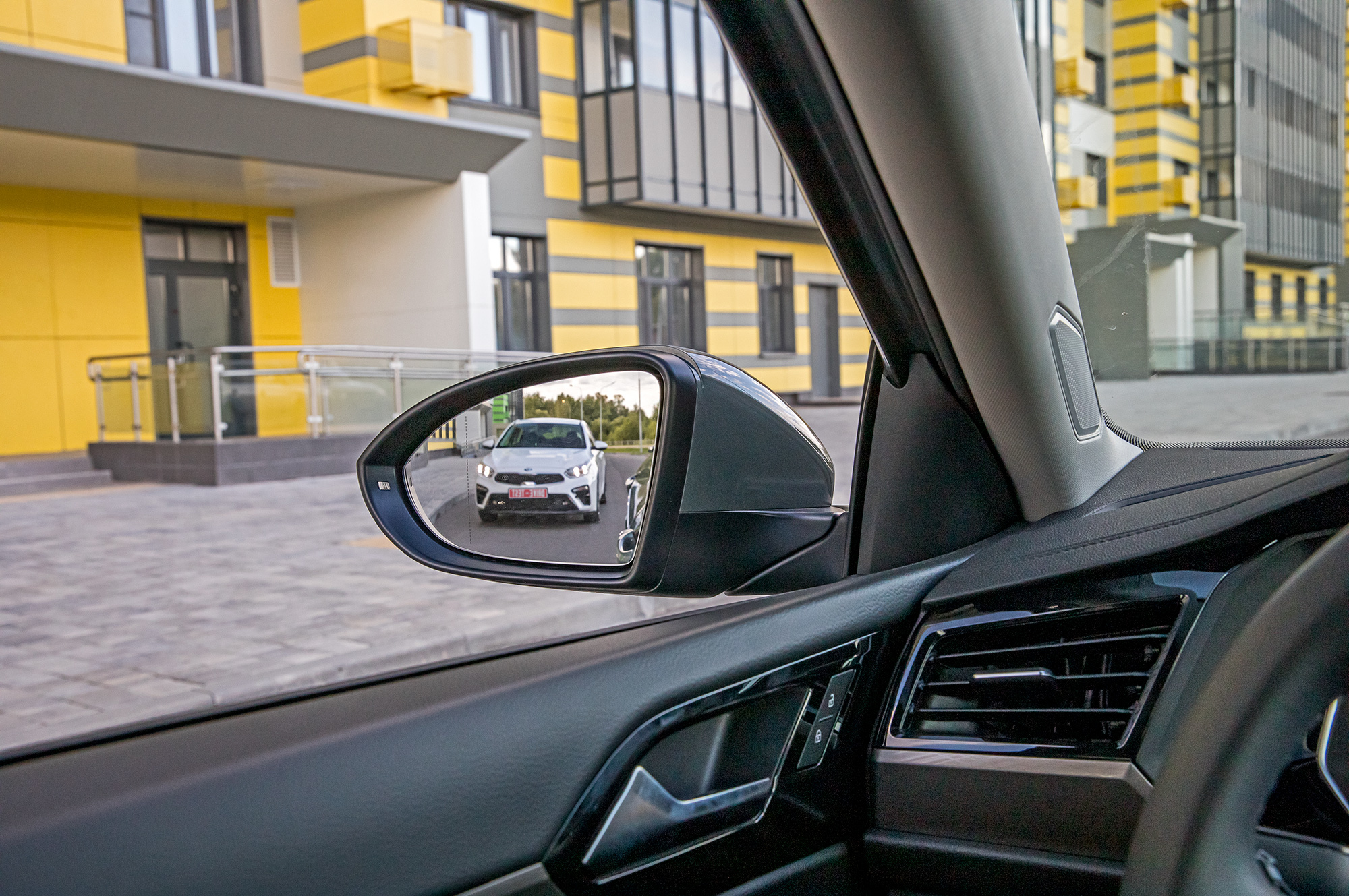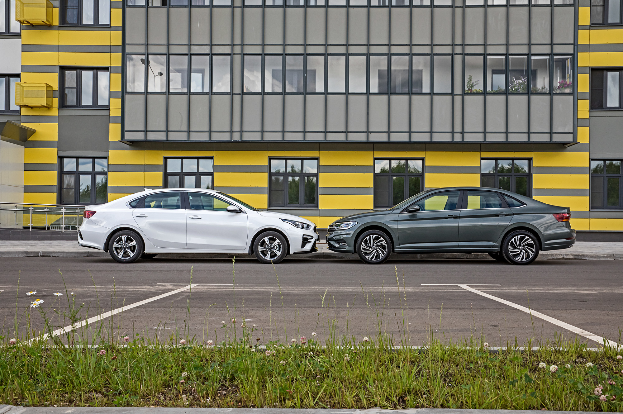 Volkswagen выглядит богаче прежде всего благодаря массивному передку с обилием хрома. Правда, колёса визуально вываливаются из арок вниз, как будто про увеличенный до 155 мм (по нашим замерам) клиренс вспомнили в последний момент, когда арки уже были вычерчены. Не по-немецки развитая пластика боковин даёт ощущение технологичности, но подчёркивает неравномерные кузовные зазоры. Cerato при более простом дизайне собран калининградскими рабочими аккуратнее.