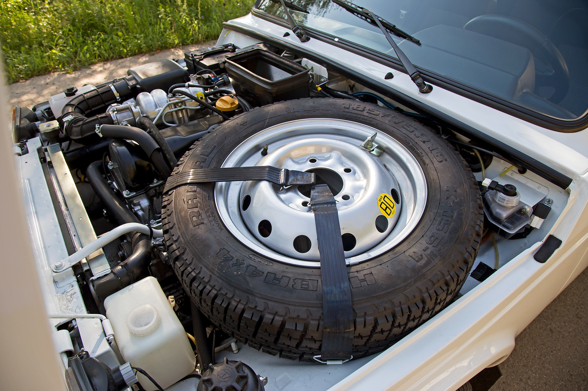 Капот по-жигулёвски открывается вперёд и скрывает не только двигатель, но и запаску. Решение оригинальное, но не то чтобы сомнительное, а просто опасное. При фронтальном столкновении колесо услужливо передаёт энергию удара на тонкий моторный щит. Одних только врождённых проблем с пассивной безопасностью достаточно, чтобы не рассматривать Ниву как машину на каждый день. А вот в качестве автомобиля для выходных старушка ещё очень даже ничего.