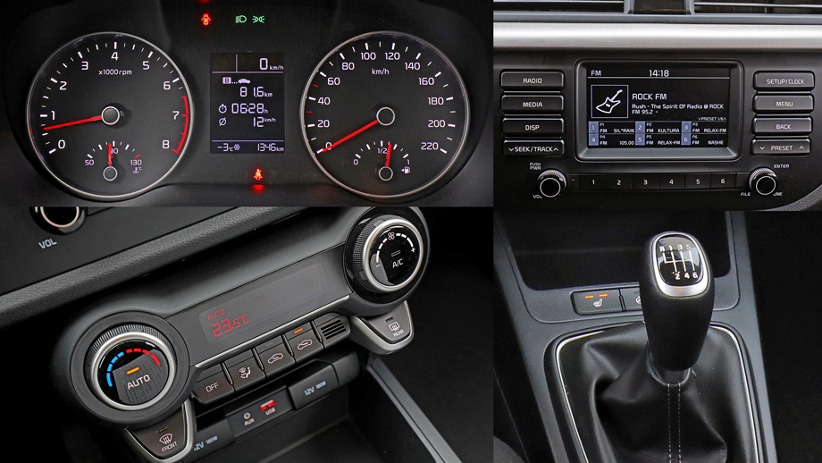 Главное в салоне Rio — ощущение иномарки. Контраст не такой, как когда пересаживались из «девятки» в Audi 80, но заметен. Пластик жёсткий, зато он качественнее и с тщательно подобранной фактурой. К подгонке деталей не придерёшься, все кнопки приятнее и сгруппированы безупречно. Климатическая установка работает тише, интерфейс электроники не запутает даже пенсионера. Удобный центральный тоннель — образец заботы. Голосовать за Rio могут помешать сиденья: они не лучше, чем в Весте. Обзорность, несмотря на тонкие стойки, хромает: зеркала мелкие, невелик проём заднего стекла.