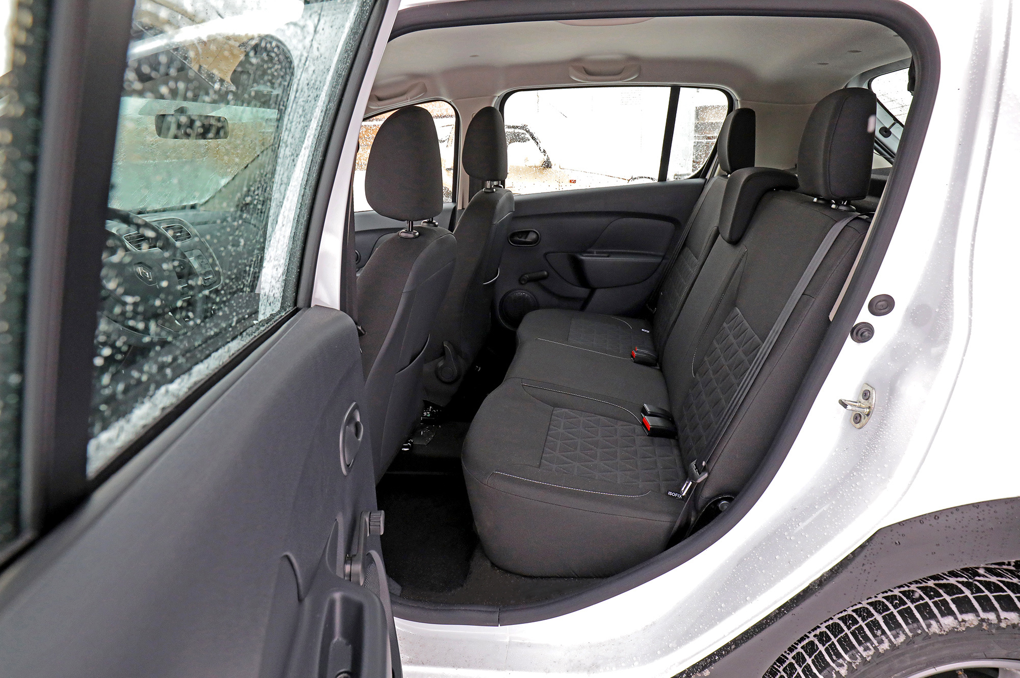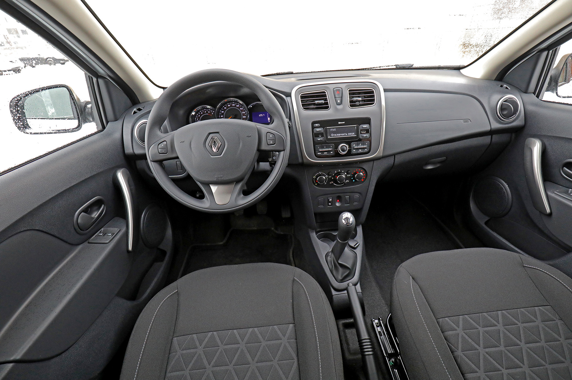 Из Audi 80 в «девятку» — это про интерьер Sandero. В простецком кресле сидишь, как на табуретке, рулевая колонка регулируется только по высоте. Зеркала маленькие, боковые стёкла забрасывает грязью. Интерьер разговорчив на неровностях, виднеются саморезы и салазки правого сиденья. Приборы читаются плохо, рукоятки печки вращаются туго. У поворотника нет тройного сигнала, а у дворников с громким моторчиком — регулировки прерывистого режима. За кондиционер и аудиосистему нужно доплачивать. Сзади тесно, багажник маленький... Слабое утешение — дистанционный запуск двигателя.
