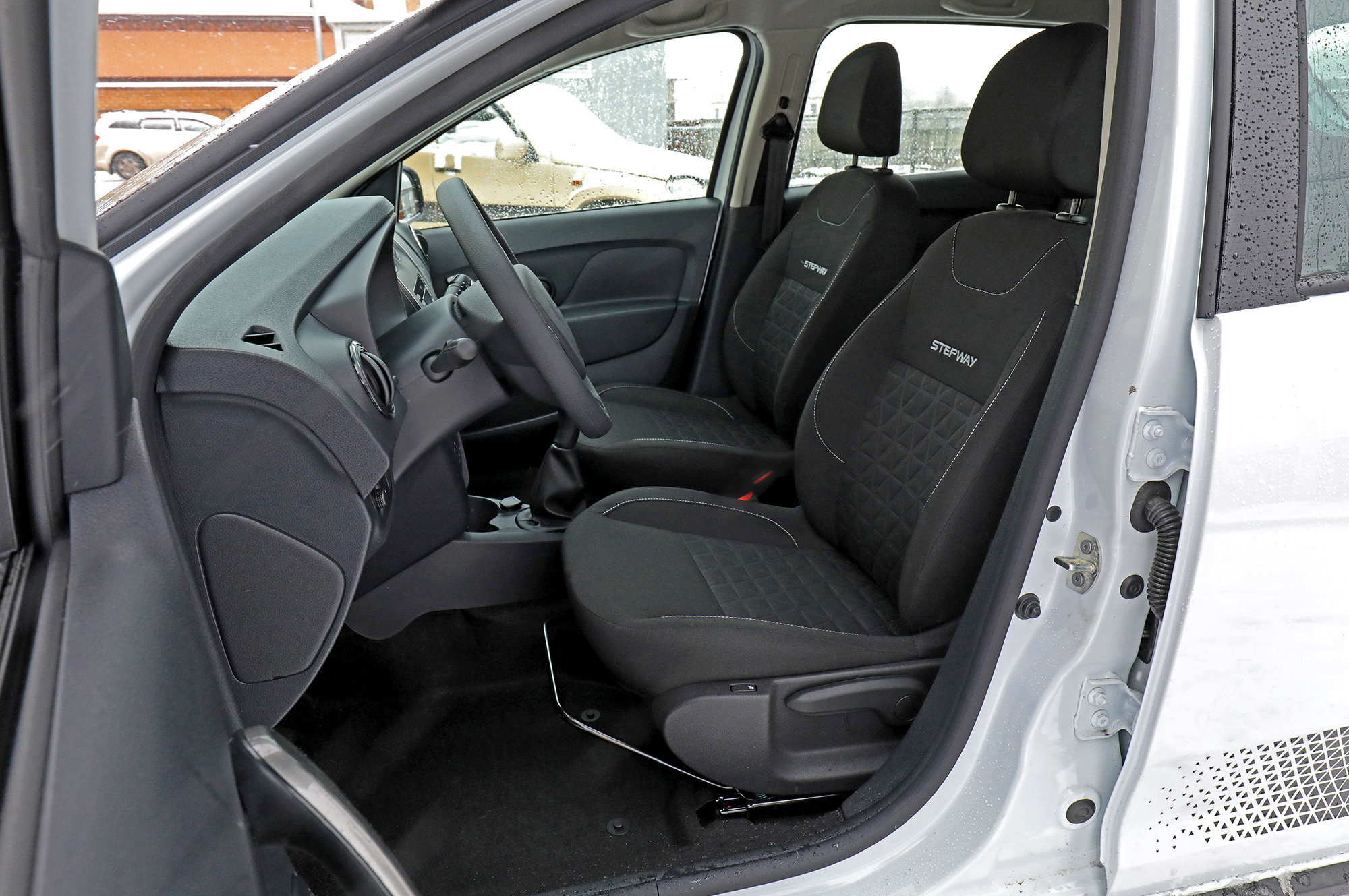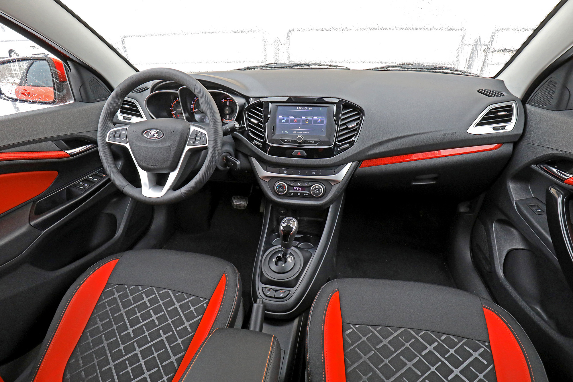 Ладе не хватает уюта и качества. Чтобы пристегнуться, приходится нащупывать глубоко утопленный замок, бортовой компьютер заморочен, мультимедийная система — тоже, а подстаканники расположены неудобно. Разнофактурный пластик не раздражает, но убогий грантовский блок стеклоподъёмников — это позор. Грубо сделаны подрулевые рычажки, рукоятки климата вращаются с невнятным усилием, вдобавок новоиспечённый микролифт крышки бардачка работает кое-как, почему-то слабо натянут «ручник», а дворники каждый раз дёргаются перед остановкой. Всё вместе это сильно портит впечатление.