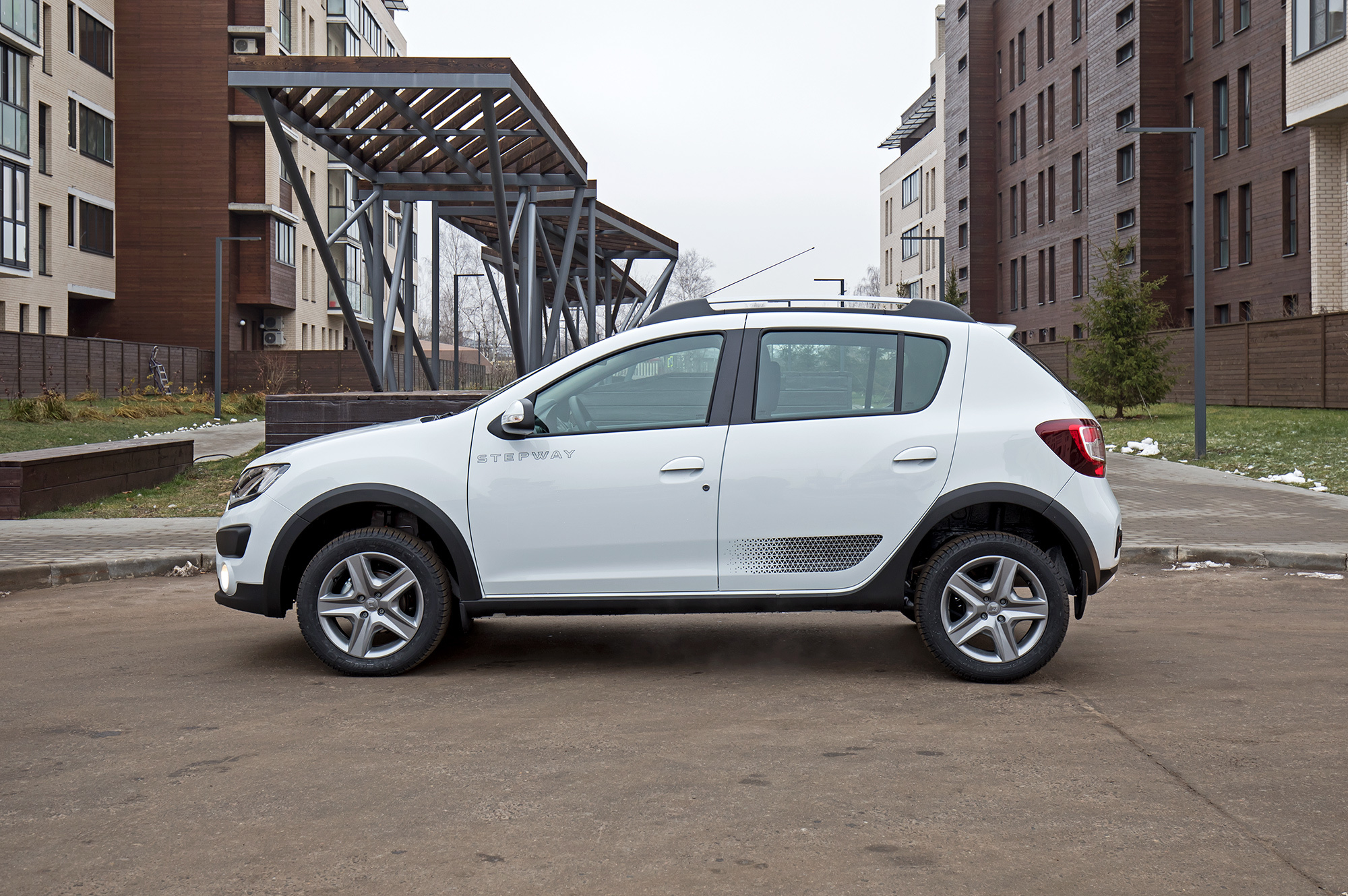 Пересаживаешься в Stepway, и вылезают слабости древнего логановского шасси. Руль тяжёл на парковке, а на скорости попробуй-ка его удержи: неровности бьют по рукам. Высокий клиренс повлиял на геометрию приводов, поэтому под тягой баранку затягивает внутрь поворота. А ещё Renault неважно держит прямую и единственный требует доплаты за ESP. Благо от системы можно отказаться: занос развивается плавно и не пугает. Списать Stepway со счетов не позволяет подвеска. После Весты (а тем более Rio) комфорт какой-то сюрреалистичный. Stepway скругляет даже откровенно глубокие и острые ямы.