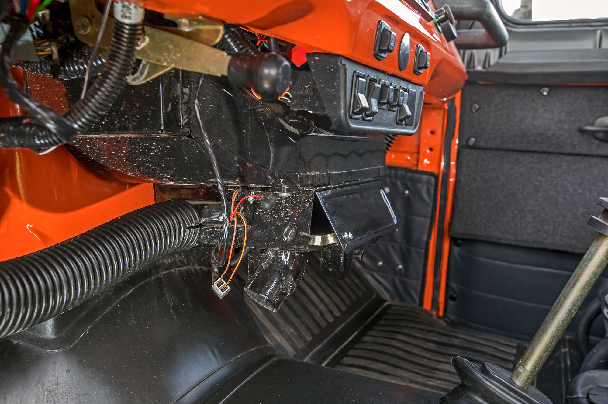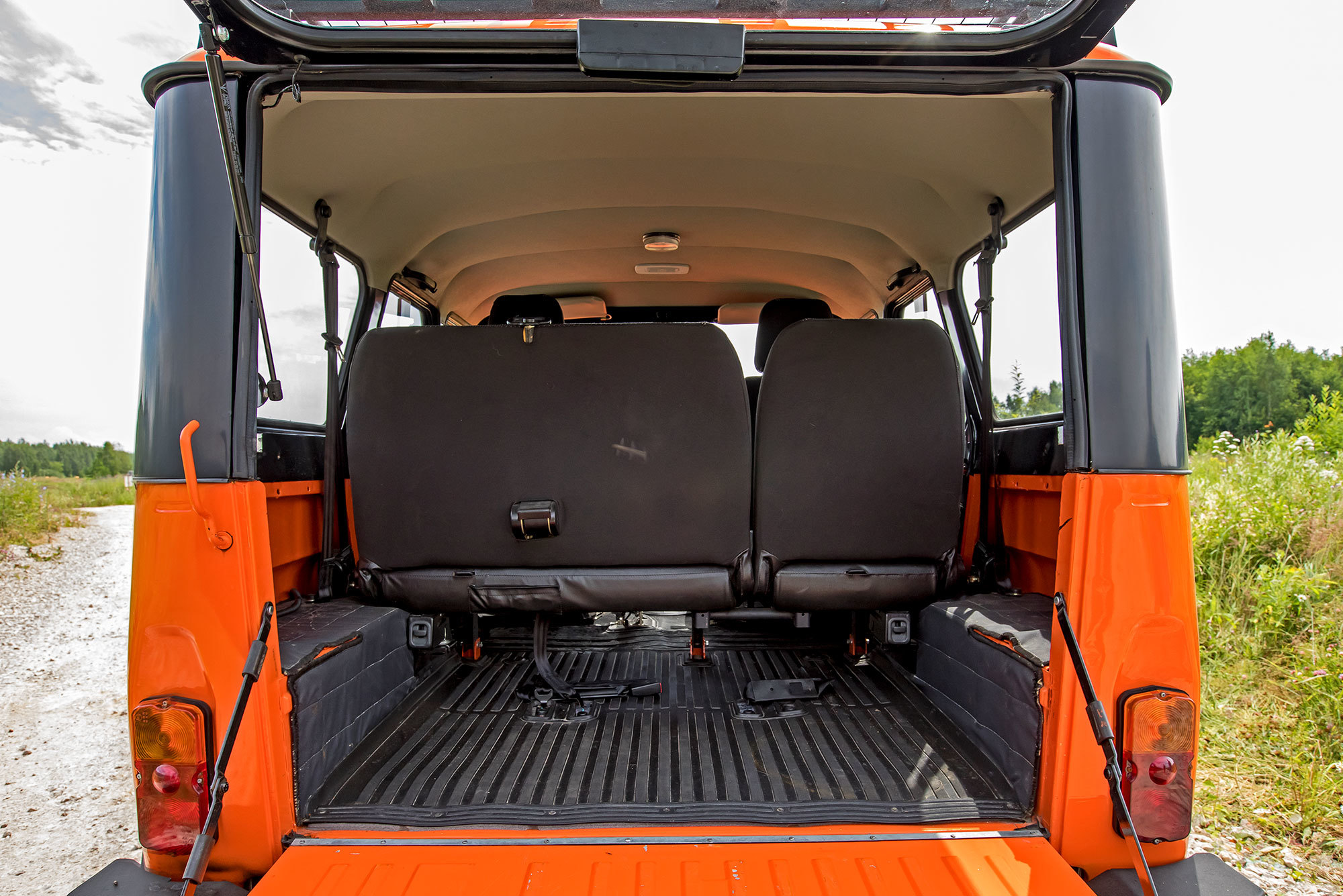 Суровость УАЗа оправдывает беспрецедентная для серийной машины проходимость. Даже базовый Хантер без блокировок способен показать кузькину мать олдскульным Крузакам и лифтованным Disco. А экспедиционный, с блокировкой заднего редуктора и внедорожными шинами 225/85 R16, увеличивающими дорожный просвет до 241 мм, кажется, вообще не знает преград. В условиях, где Нива ползёт на пределе геометрических возможностей, оранжевый «козлик» даже не требует активации понижающего ряда.