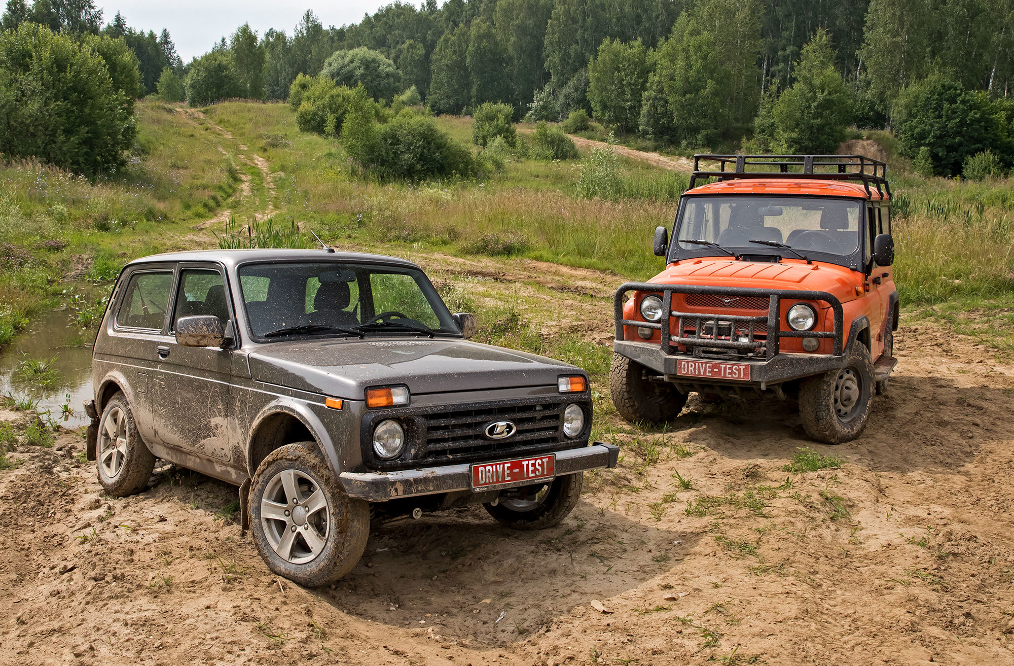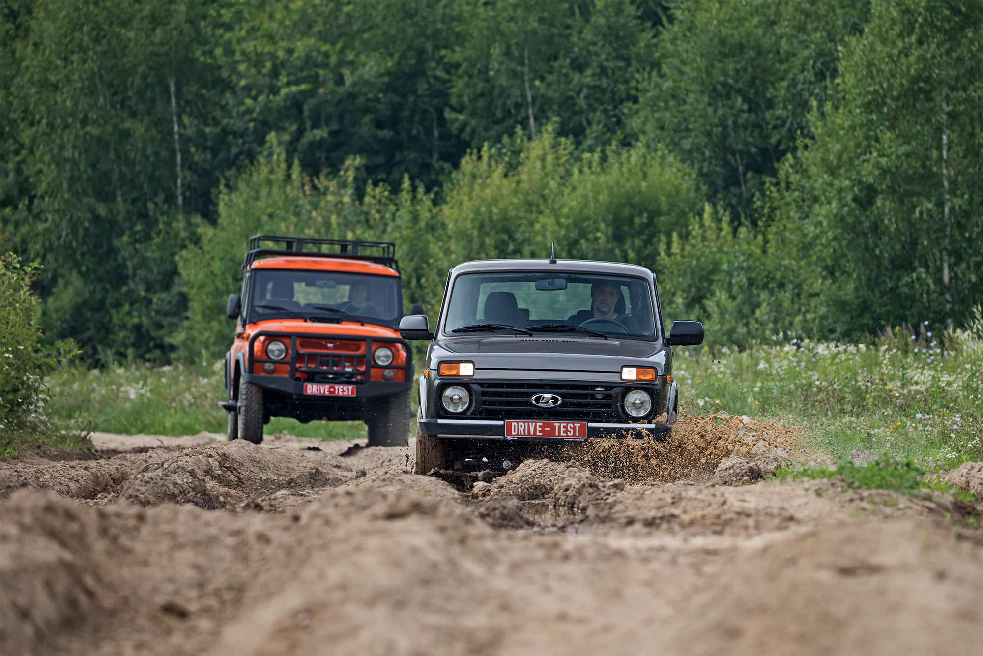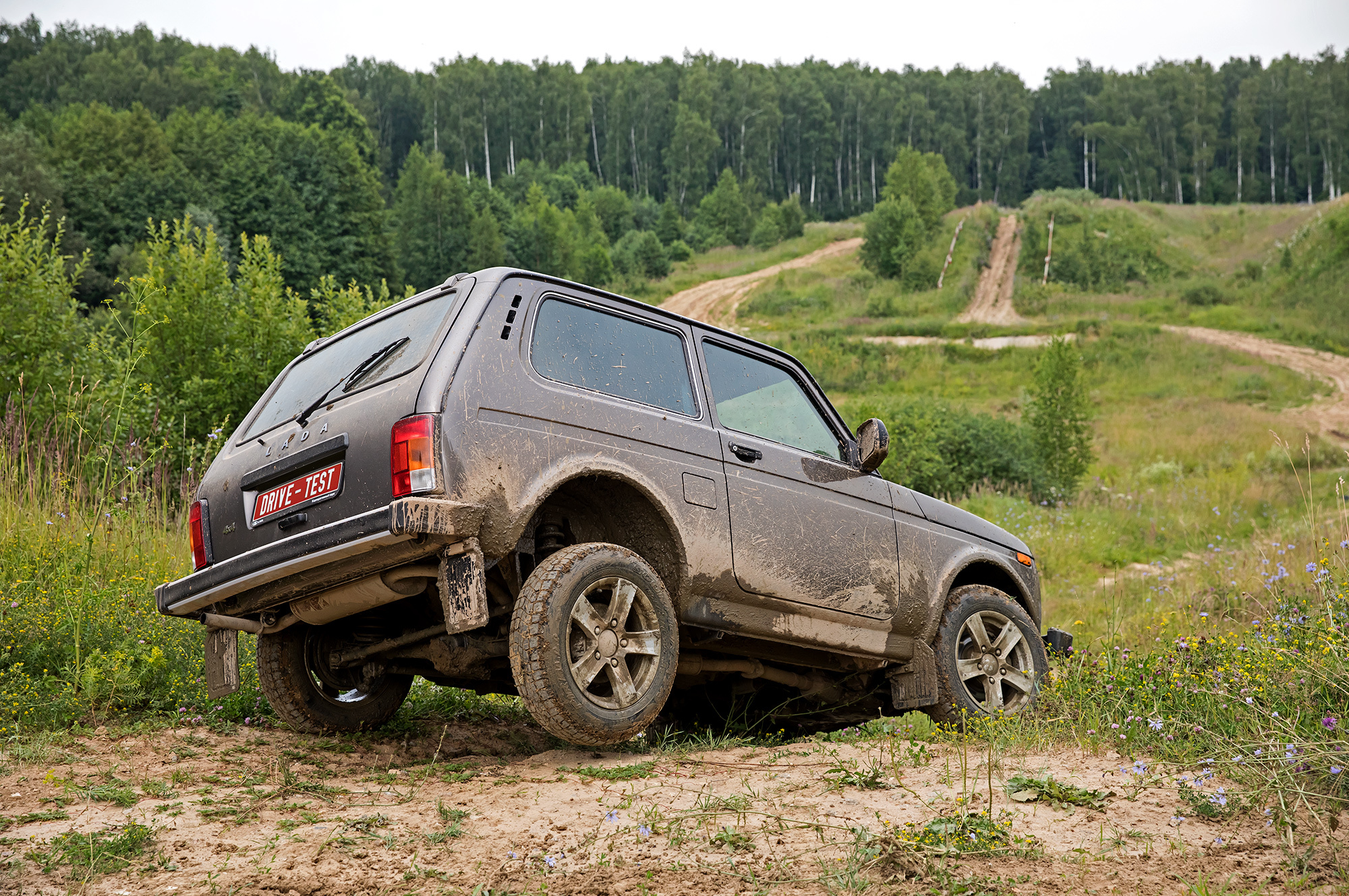 А что Lada? Сидит на пузе. Кроссоверные 20 см под стальной защитой не позволяют следовать по пробитой УАЗом колее. Приходится выбирать пути объезда. Переваливаться через глубокие борозды без контакта с грунтом трёхдверке помогает короткая база. Но в топких местах расстояние между осями наоборот хочется увеличить: так больше шансов, что под одной из них окажется более твёрдая почва. К слову, пятидверная Нива, на мой взгляд, увереннее движется по раскисшим участкам именно благодаря длинной базе.