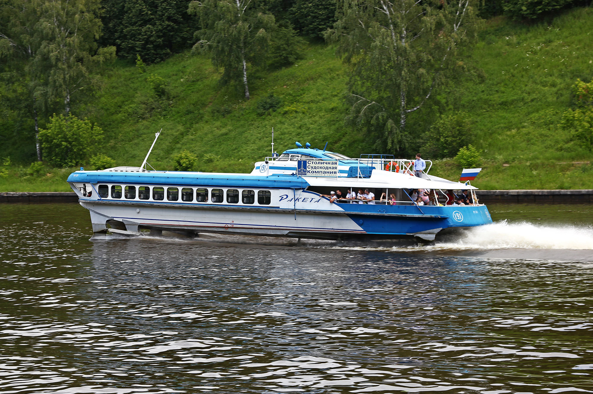 Изящное решение: в качестве подруливающего устройства применяется... выхлоп двигателя. Он выходит под воду, и его можно полностью направить на правый или левый борт для помощи при подходе или отходе от причала. Вслед за Ракетой с 1957 по 1964 год были освоены ещё семь типов судов на подводных крыльях, включая Метеоры и их морской вариант ― Кометы. Эти суда до сих пор используются, их переводят на более современные двигатели, холят и лелеют… А Ракетам не повезло. Парочка вроде осталась на ходу в Якутии, прекрасный экземпляр ходит в Литве, но три последних московских утилизированы ещё в 2018-м.
