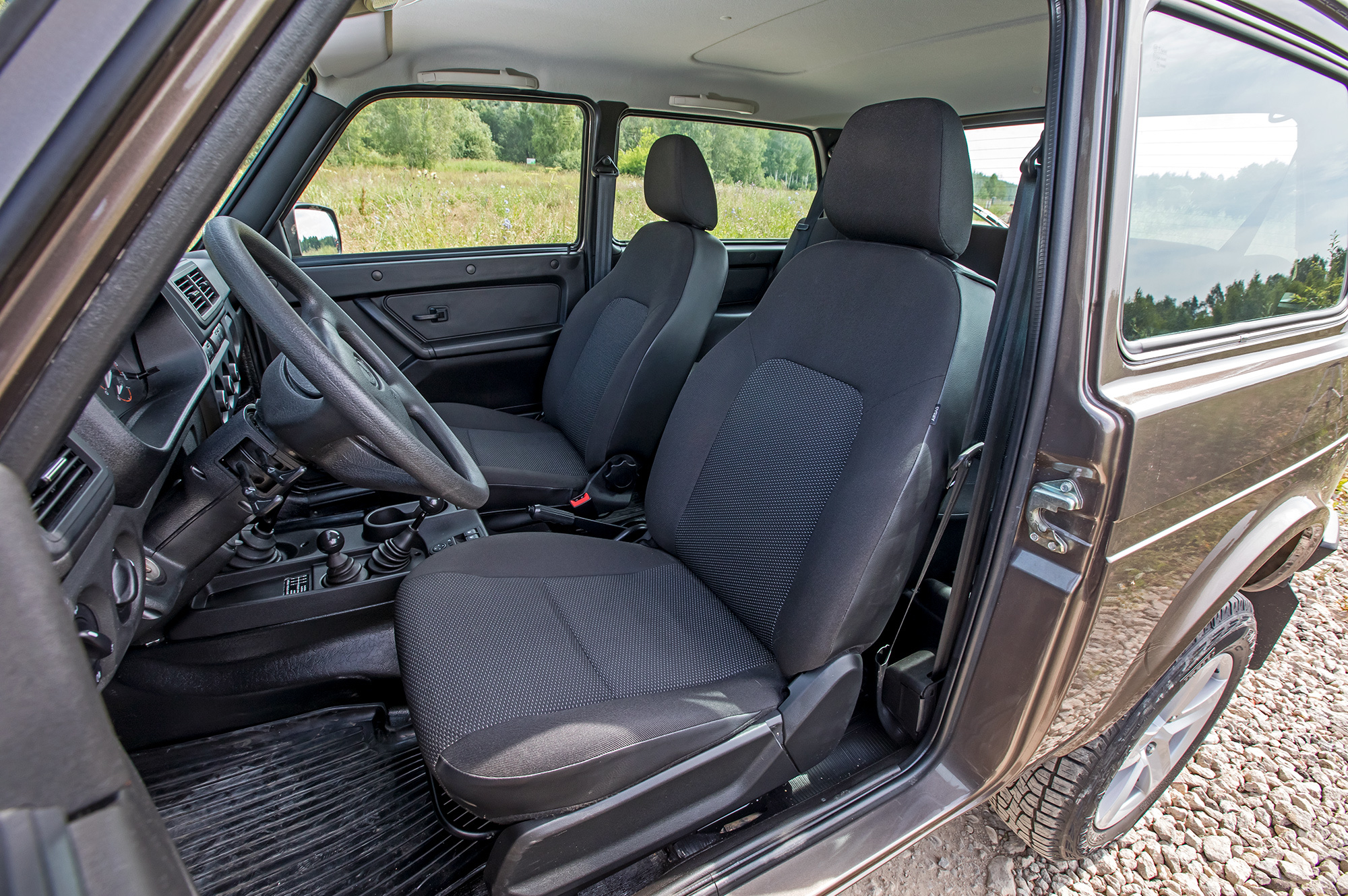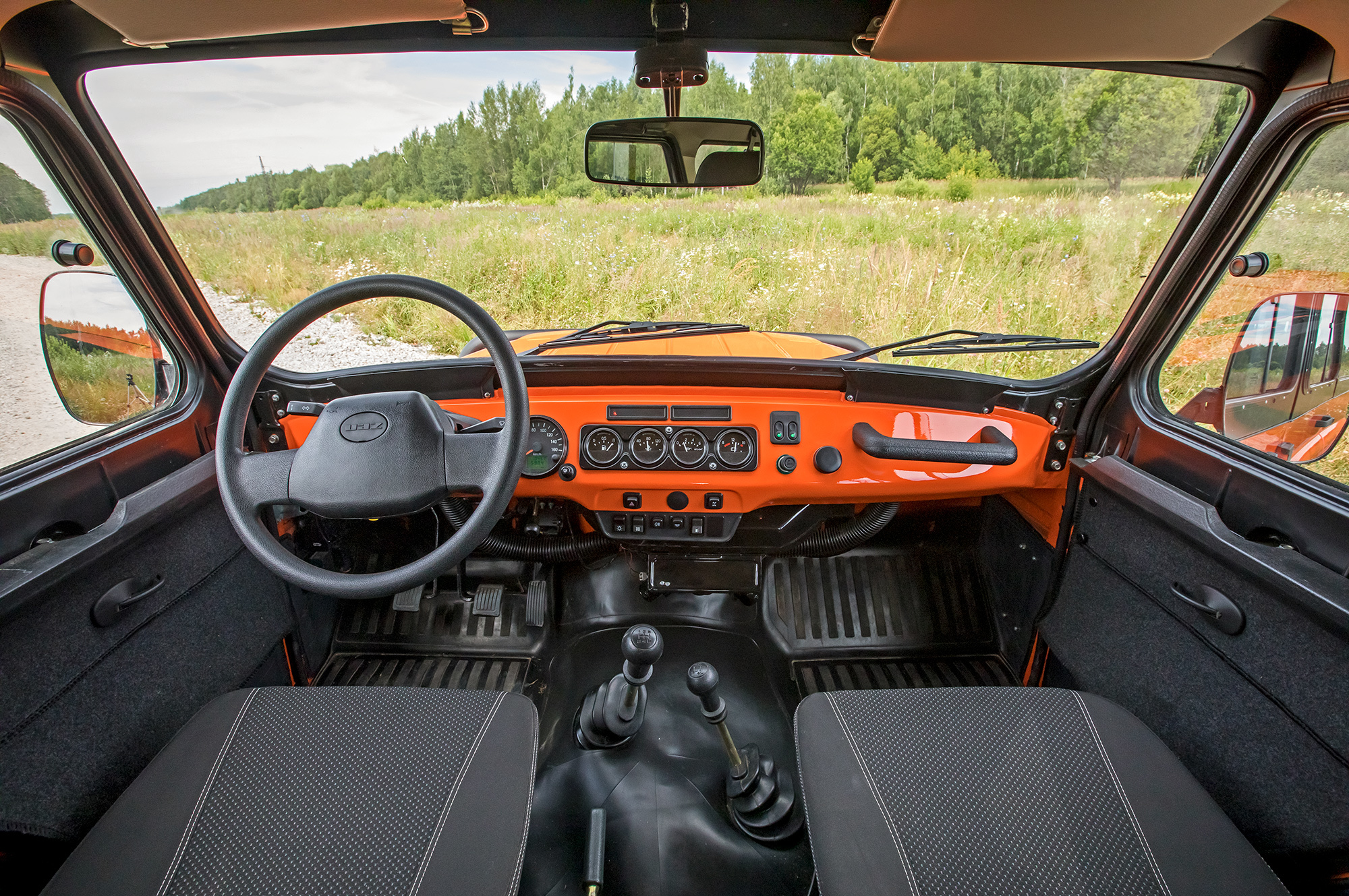 Чем ближе цивилизация, тем больше претензий к ульяновскому вездеходу. «Козлик» дёргается при включении первой передачи, брыкается на старте с места и ёрзает из стороны в сторону, двигаясь по прямой, из-за люфтов в рулевом управлении. Путаясь в многочисленных щелях, ветер заглушает и шинный гул, и рокот мотора. Внешние зеркала на хлипких пластиковых ножках дрожат, размывая картинку. Сдвижные форточки не обеспечивают притока воздуха: в салоне душно, а если идёт дождь, все окна моментально запотевают. Помогает только припасённая тряпочка.
