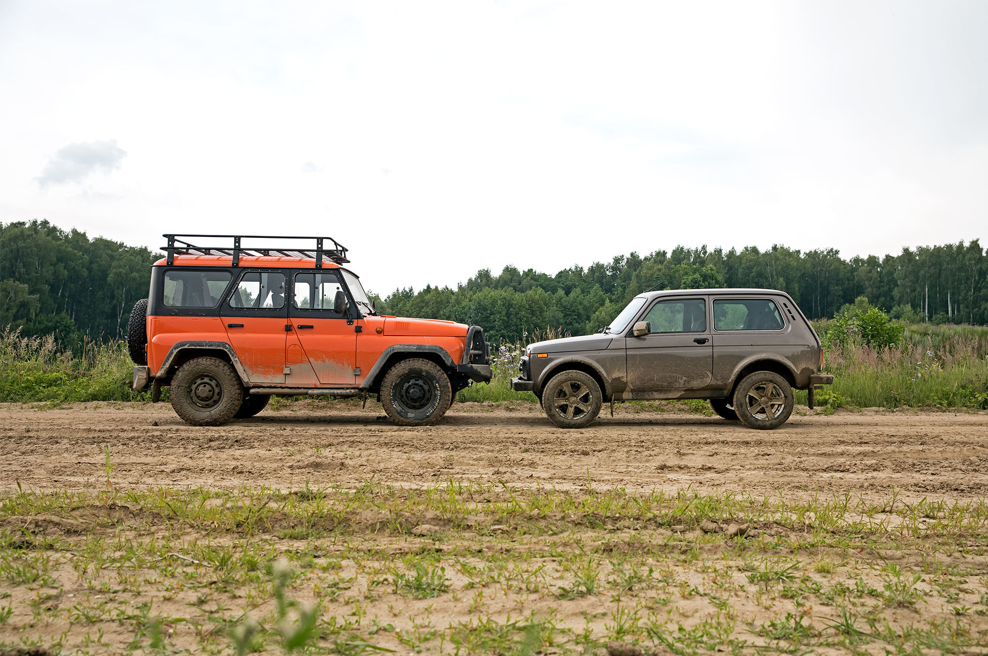 Конструктивно между этими внедорожниками мало общего. Нива построена на основе несущего кузова и использует постоянный полный привод. У Хантера — рама и жёстко подключаемая передняя ось. Даже покупатель у них разный, уж слишком отличается идеология автомобилей. Однако нельзя игнорировать связь времён — она роднит наши машины, невзирая на инжиниринг. Две судьбы, две легенды. Поэтому когда нам понадобился крепкий парень с лебёдкой для подстраховки при оценке потребительских свойств обновлённой Лады, без сомнений был выбран «козлик». Кто ж ещё сдюжит?