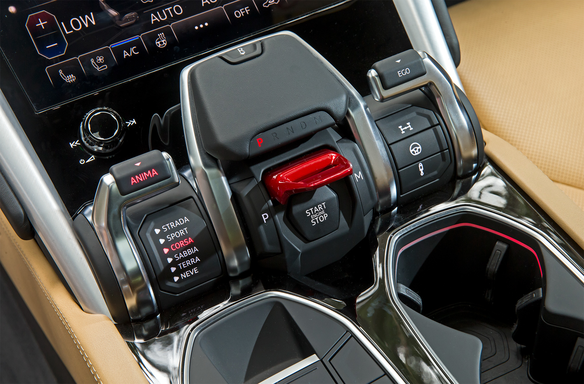 «В базе» предусмотрено четыре режима движения: помимо трёх асфальтовых есть ещё Neve, что значит «Снег». В нашем случае добавлен так называемый внедорожный пакет с песчаной (Sabbia) и грунтовой (Terra) программами. Последняя заметно меняет характер кроссовера. На сыпучей поверхности Urus становится более игривым, азартно ввинчиваясь даже в тесные шпильки под сброс газа. Охотно и чисто по-кваттровски скользит на прямых колёсах — вообще всячески намекает на интересное времяпрепровождение зимой. Вот когда точно пригодится комплект базовых колёс диаметром 21 дюйм с зубастыми шинами.