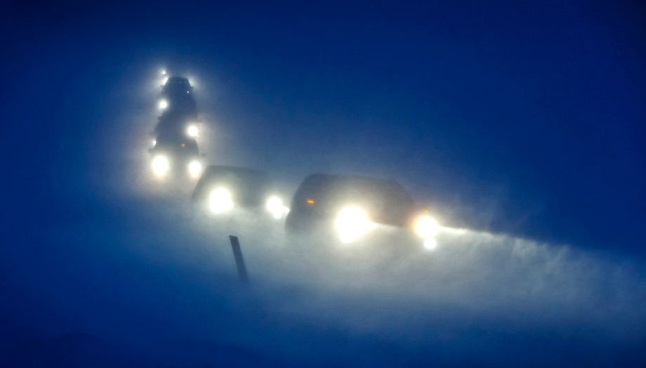 «Нужно торопиться. Погода скоро испортится». Англичане из группы технической поддержки быстро рассаживают экипажи по машинам. «Попробуем двигаться впереди погодного фронта». Ха! С таким же успехом эти ребята могли пообещать нам, что на время презентации нового кроссовера Land Rover Discovery Sport они увеличат световой день Исландии с пяти часов до семи. Impossible — невозможно! Снежная буря, летящая со скоростью 61 м/с, накрыла колонну в первой четверти маршрута. Порывы ветра, словно вилами, проредили ряды Ленд Роверов, утащив несколько машин в кювет. Остальные попрятались в белой мгле. Мы все умрём? — то ли в шутку, то ли всерьёз спрашивает по рации кто-то из коллег.