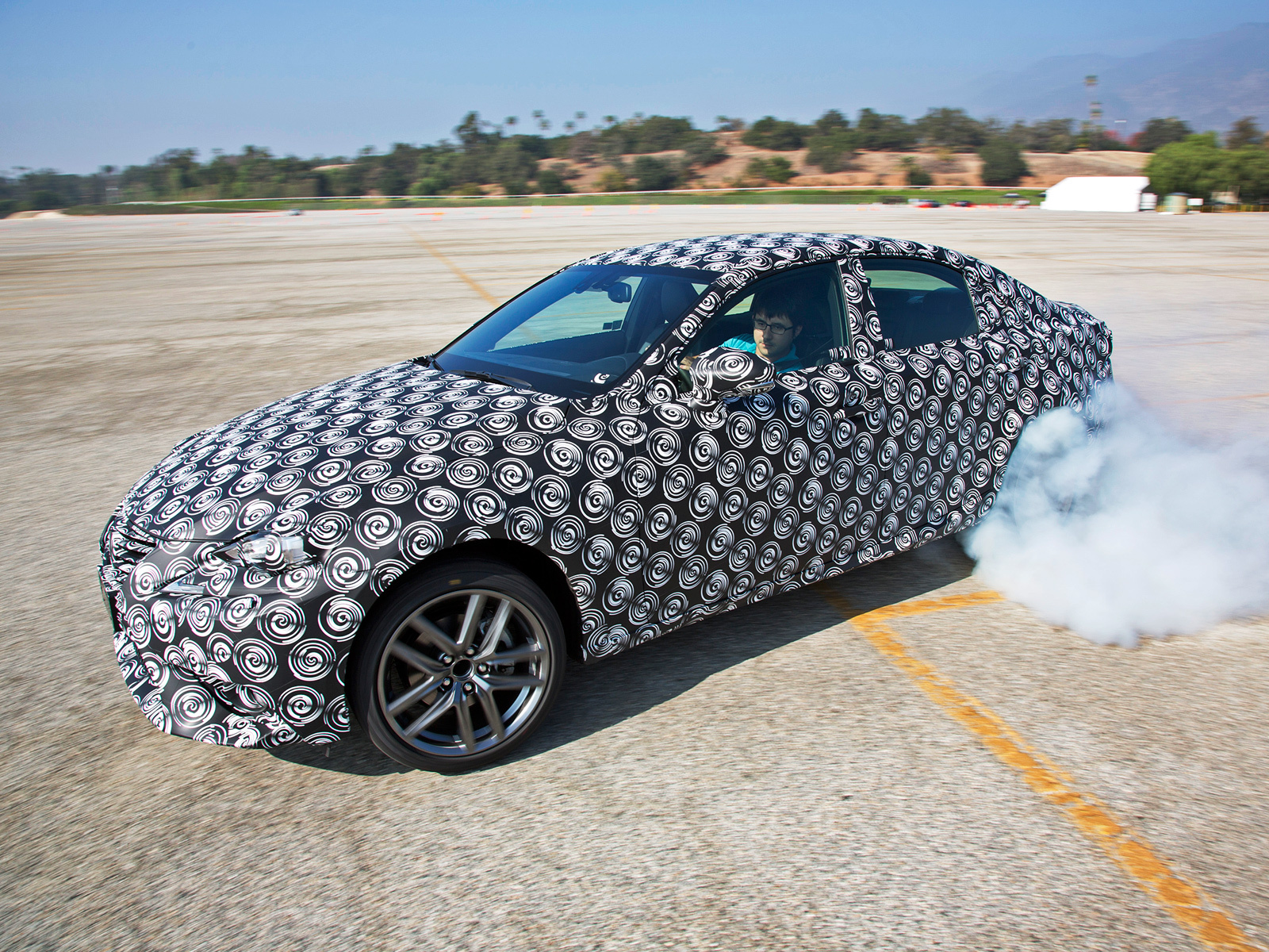 Уже после первого круга по импровизированной трассе я перестал обращать внимание на обилие камуфляжа и на салон, собранный буквально из чего попало. Правду говорят: все познаётся в сравнении. Если с «ай-эсом» предыдущего поколения на треке приходится бороться, силой заправляя его в повороты, то новая машина становится буквально продолжением тела. Шасси отменно сбалансированно, Лексус едет ровно туда, куда его направляешь, а снос и занос появляются именно тогда, когда их ожидаешь. Вести новый IS в скольжении легко и приятно, мощности V-образной «шестёрки» 2.5 вполне достаточно, чтобы поддерживать пробуксовку, при этом машина не стремится чуть что встать поперёк трассы.