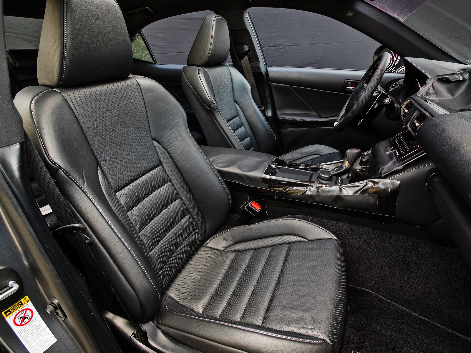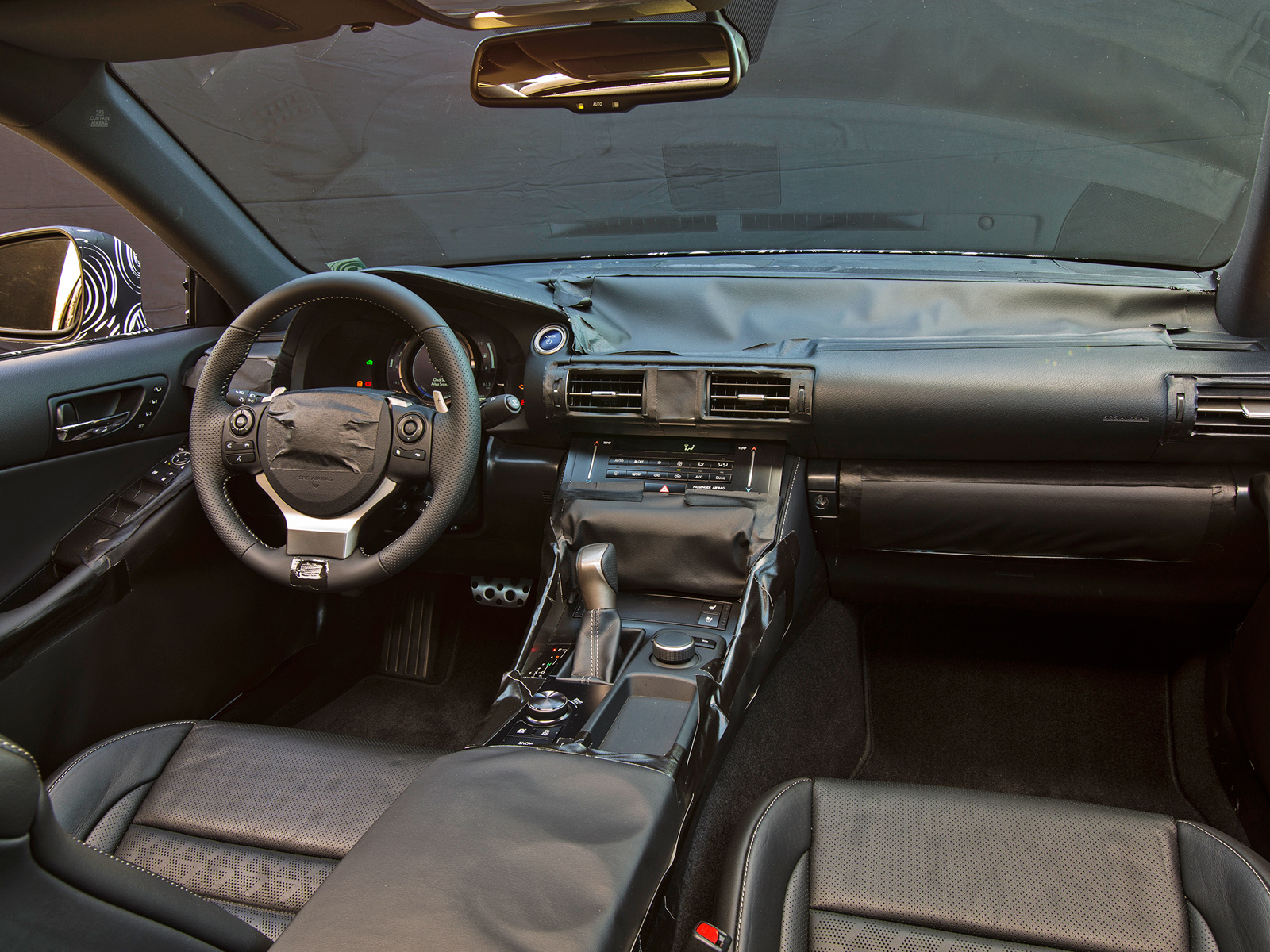 Вообще весь салон новой машины — это даже не шаг, а скачок вперёд. И одновременно с этим — возвращение к истокам. Прошлое — это спортивный характер, которым славился первый Lexus IS, тот, что был «близнецом» Тойоты Altezza, недаром он снискал огромную популярность у тюнеров. Сиденья теперь расположены на 20 мм ниже, они диктуют посадку с вытянутыми вперёд ногами, руль и спинку кресла можно поставить практически вертикально, а главное место в комбинации приборов занимает огромный тахометр. Будущее — это общая компоновка салона с многоярусной передней панелью. Хоть она и закрыта плёнкой, мы знаем, что на ней будет красоваться семидюймовый экран высокого разрешения. А ещё — это регулировка температуры в салоне с помощью сенсорных «слайдеров» (прямо как на концепте LF-CC), «мышка» для управления развлекательной системой... Наверняка под слоями чёрной плёнки кроется ещё что-то интересное.