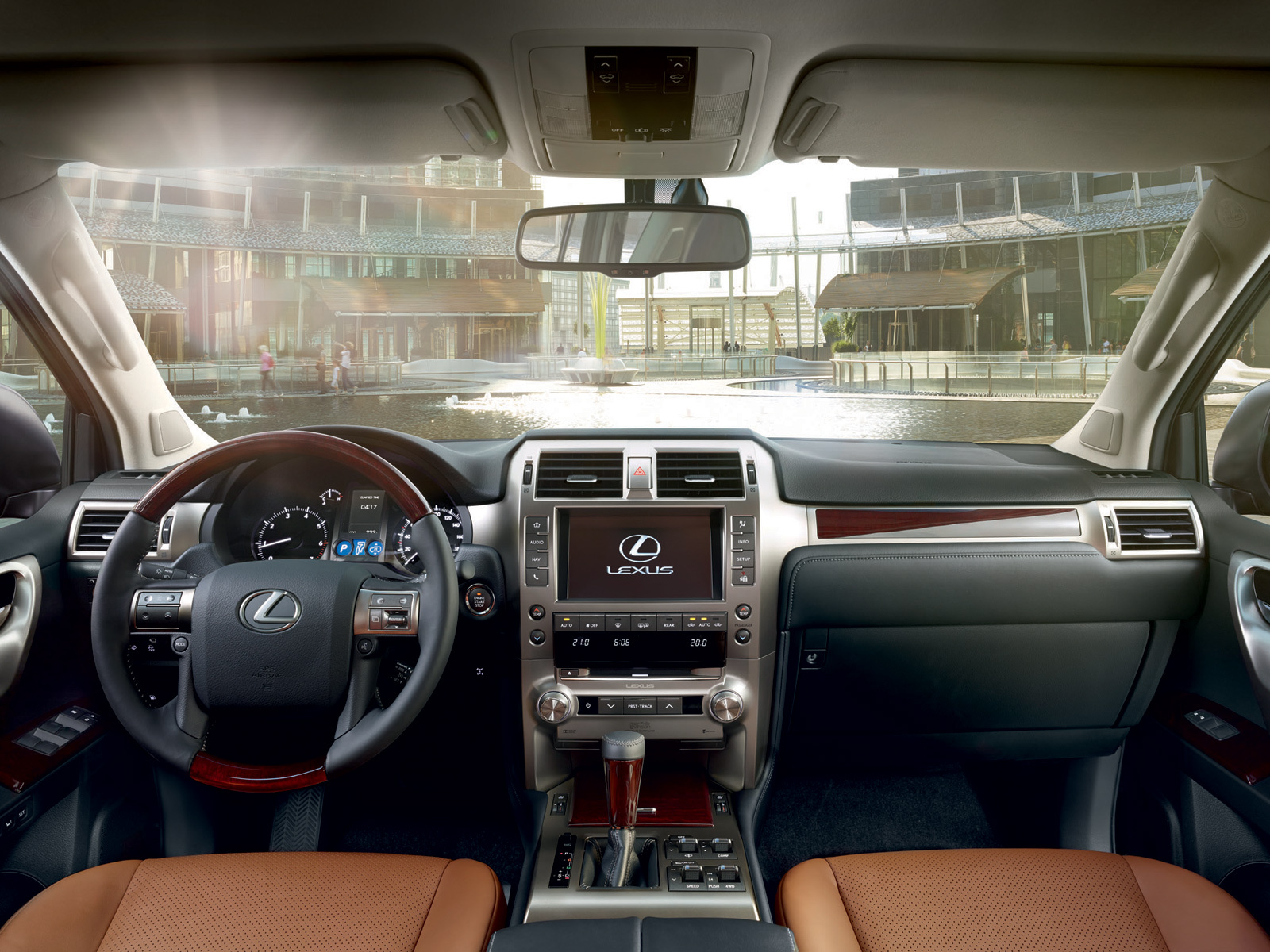 Впрочем, и в промежутках между сосредоточенным преодолением препятствий водитель и пассажиры Лексуса GX не будут чувствовать себя лишёнными комфорта. У обновлённой машины появился новый восьмидюймовый дисплей в центральной консоли, на который можно выводить дубликат экрана смартфона (система Mirror Link), если покупатель выбрал машину без навигации. На экране могут отображаться входящие эсэмески, и на них можно даже отвечать, не хватаясь за мобильник. Обновилась кожаная обивка: выделка стала качественнее. Вместо дерева сорта бубинга теперь используется махагони (что, в общем-то, — на вкус и цвет...). Правда, эталоном по качеству материалов Lexus GX, как и прежде, не является. Жестковатого пластика в салоне немало, особенно на передней панели.
