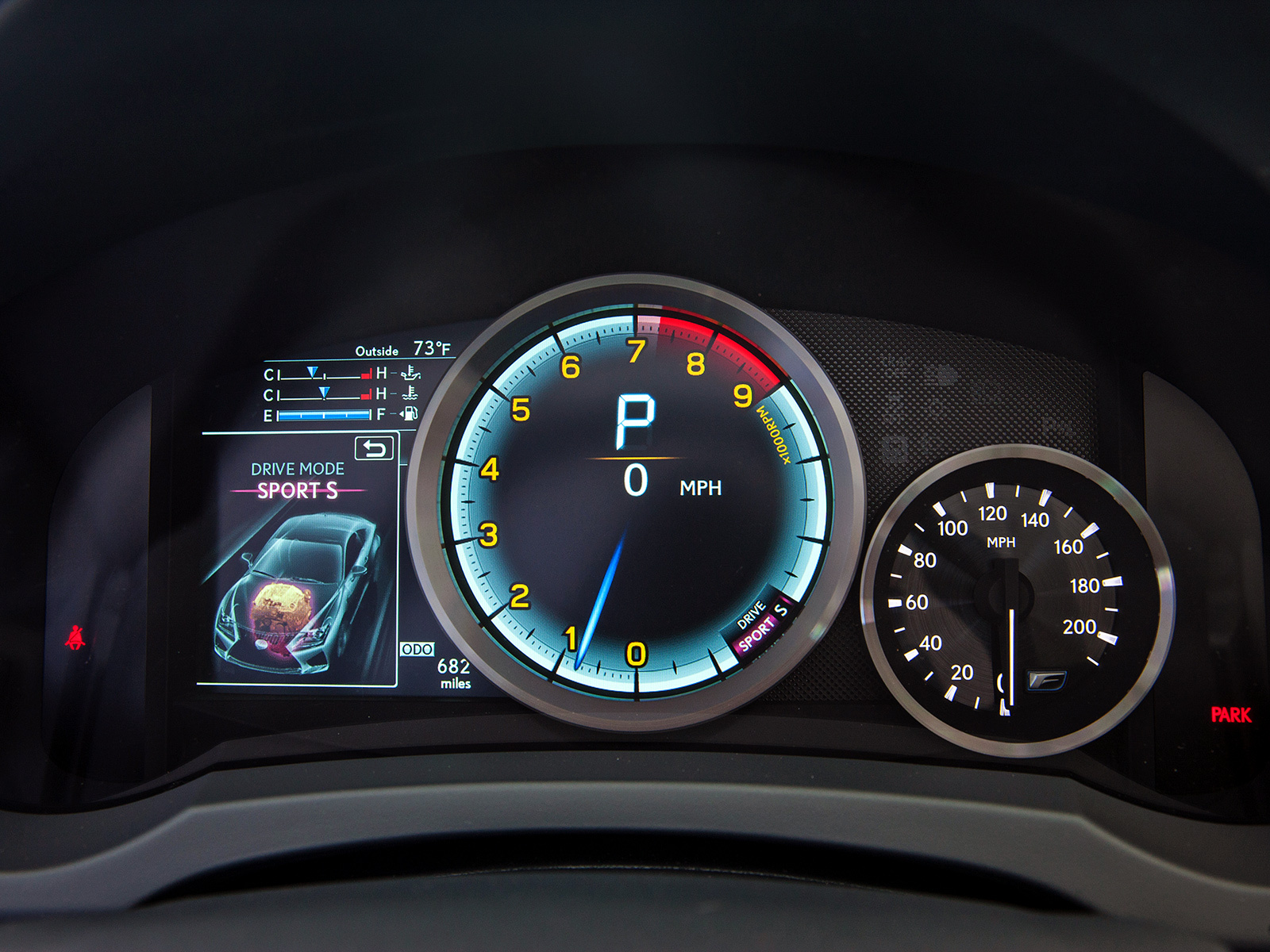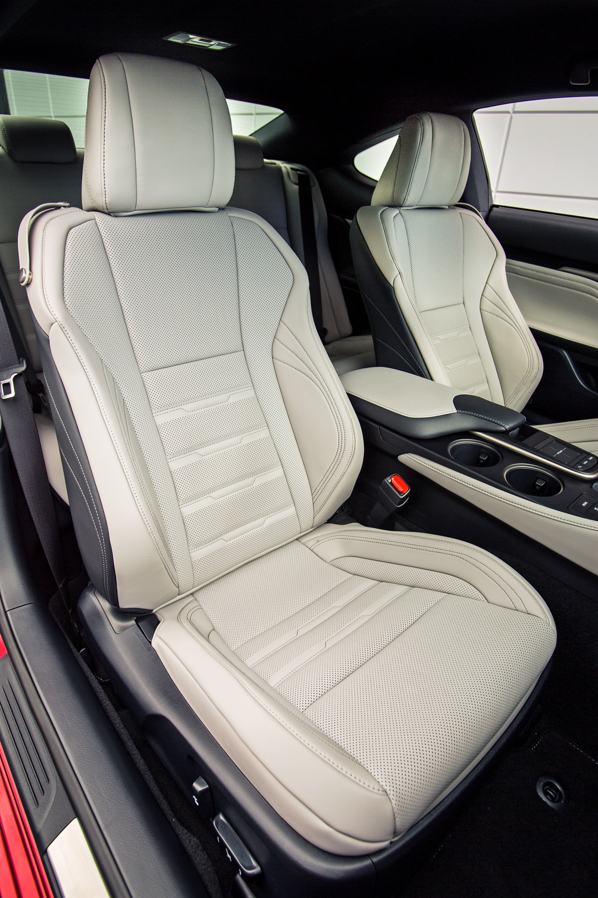Lexus RC 350 — это городской спорткар. У него удобный салон с полноценными задними местами и вполне вместительный багажник. Силовой агрегат умело совмещает в себе два противоположных характера. «Шестёрка» 2GR-FSE отлично уравновешена: на холостом ходу внутри её не слышно вовсе и до отметки 4000 об/мин она выделяется разве что уверенной тягой на низах. «Автомат» работает скоро, но очень плавно. Зато после четырёх тысяч... Тихое сопение сменяется рыком. Передачи вколачиваются молниеносно. И руль, который при неспешной езде казался немного ватным, вдруг становится острым и нервным. Режим Sport возводит всё в квадрат: ещё быстрее, ещё жёстче, ещё громче! Но стоит сбросить газ — и купе вновь превращается в белого и пушистого зверька. Куда прикажете: в супермаркет или ночной клуб?