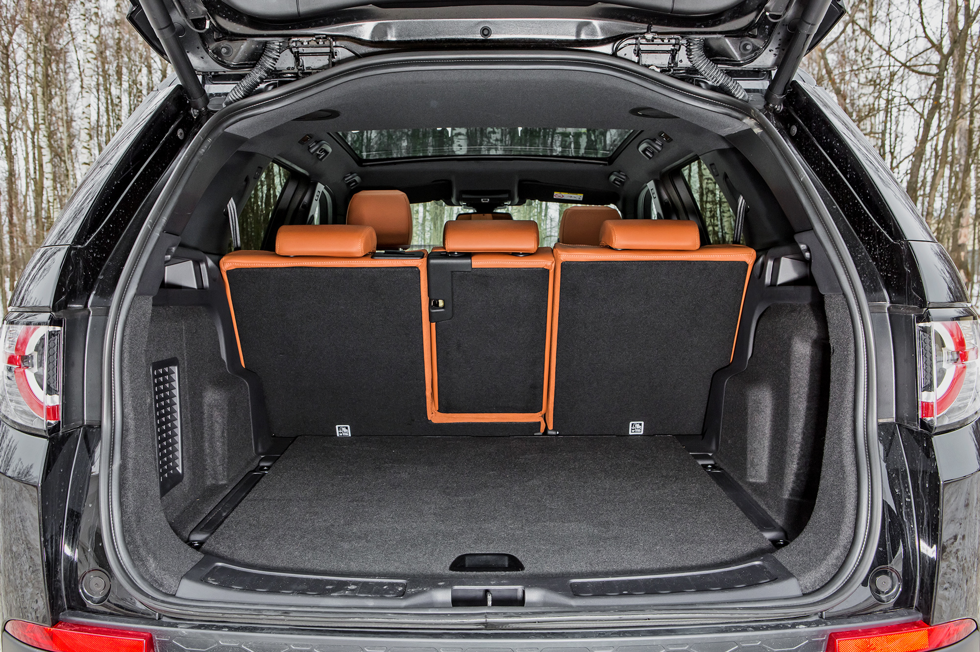 Discovery Sport самый дружелюбный в отношении задних пассажиров. Достаточно места над головой, полно — в коленях, ноги по голень можно подсунуть даже под опущенное переднее кресло. Плюс удобнейшие дверные подлокотники с ручками да регулировка частей сиденья вперёд-назад и по наклону. Втроём тут тоже лучше всего. Из минусов — сетчатые кармашки в передних спинках, но они есть и в Эвоке. При посадке в Range Rover цепляешь торчащую колёсную арку, сидишь низко, подлокотники, наоборот, задраны, ногам под передним креслом места чуть, а третий пассажир явно лишний — мешает высокий тоннель.