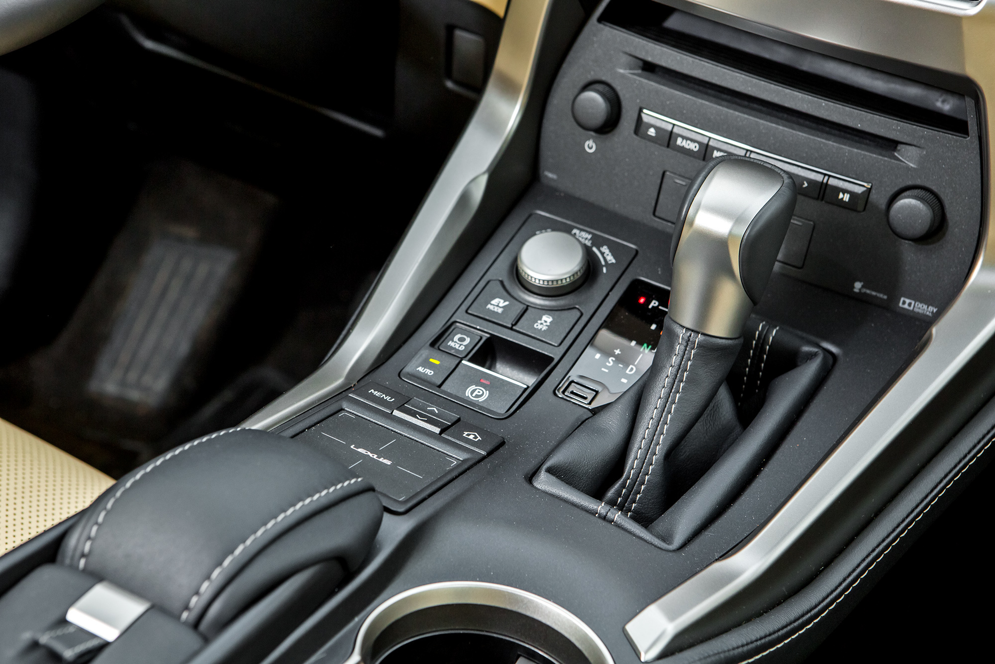 Внутри NX тоже многогранен. Рубленная на манер радиаторной решётки центральная консоль, множество кнопочек — и принудительно-расслабленная посадка. Кресло приятно профилем, боковой поддержкой и — вместе с рулём — диапазонами регулировок. Но бокс-подлокотник поднят центральным тоннелем так высоко, что локоть, кроме как на него, деть и некуда. Сидишь — облокотившись.