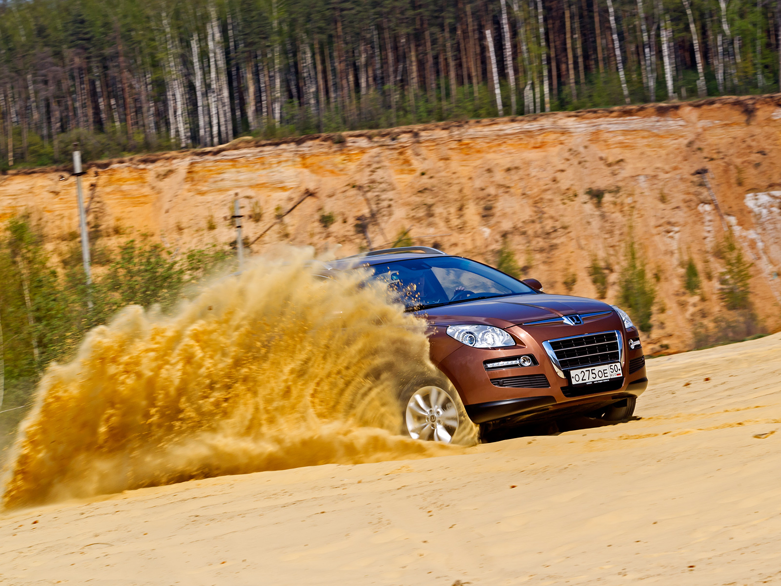 Такой короткий диалог состоялся у фотографа с Лёшей Смирновым прямо перед тем, как Luxgen задним правым колесом сполз в воду. Блокировка муфты не помогла вытащить кроссовер из водно-песчаного плена. После нескольких попыток земля ушла из-под передних колёс, и началась долгая спасательная операция. Мы копали, подкладывали под колёса доски, затем снова копали… Нас пытался вытащить проезжающий мимо ЗИЛ, но, превратив в труху два троса, ретировался. Больше трёх часов мы боролись за свободу кроссовера, а когда победили, отряхиваться от песка было бесполезно — он у нас был везде.