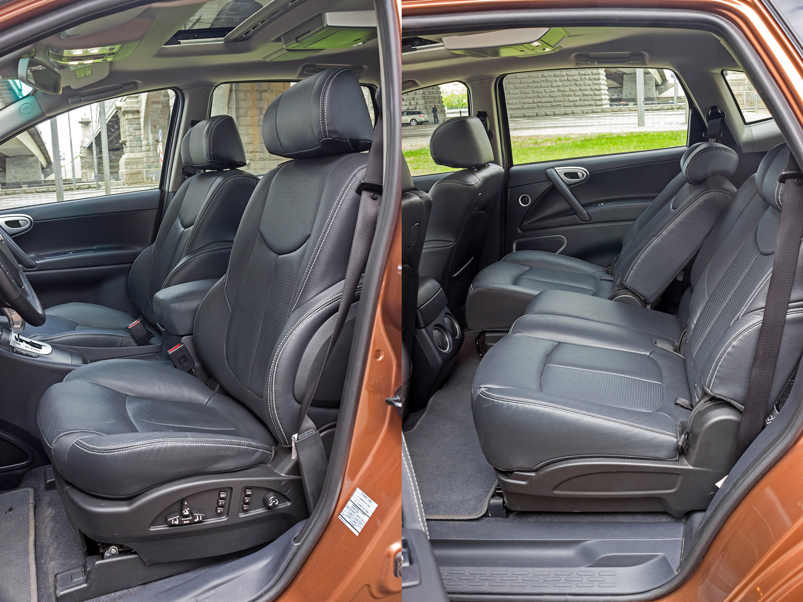 Вдобавок к этому — десятидюймовый центральный дисплей, на который внезапно выводятся картинки с камер по бокам автомобиля. Нормальный водитель на эти поздние трансляции мёртвых зон не отвлекается, а пассажирам развлечение. В пробках на экране они могут в прямом эфире смотреть на машину сверху, с небольшой высоты птичьего полёта, тоже забавно. Устанут — отдохнут, наклону спинок задних сидений позавидует аэрофлотовское кресло бизнес-класса. Спится отлично, если на пути не попадаются будильники — мостовые стыки и подобные им неприятности, которые задняя зависимая подвеска перерабатывает сердито. Единственный вариант вендетты со стороны задних пассажиров — следы от обуви на блоке дефлекторов обдува, карманах дверей и кресел.
