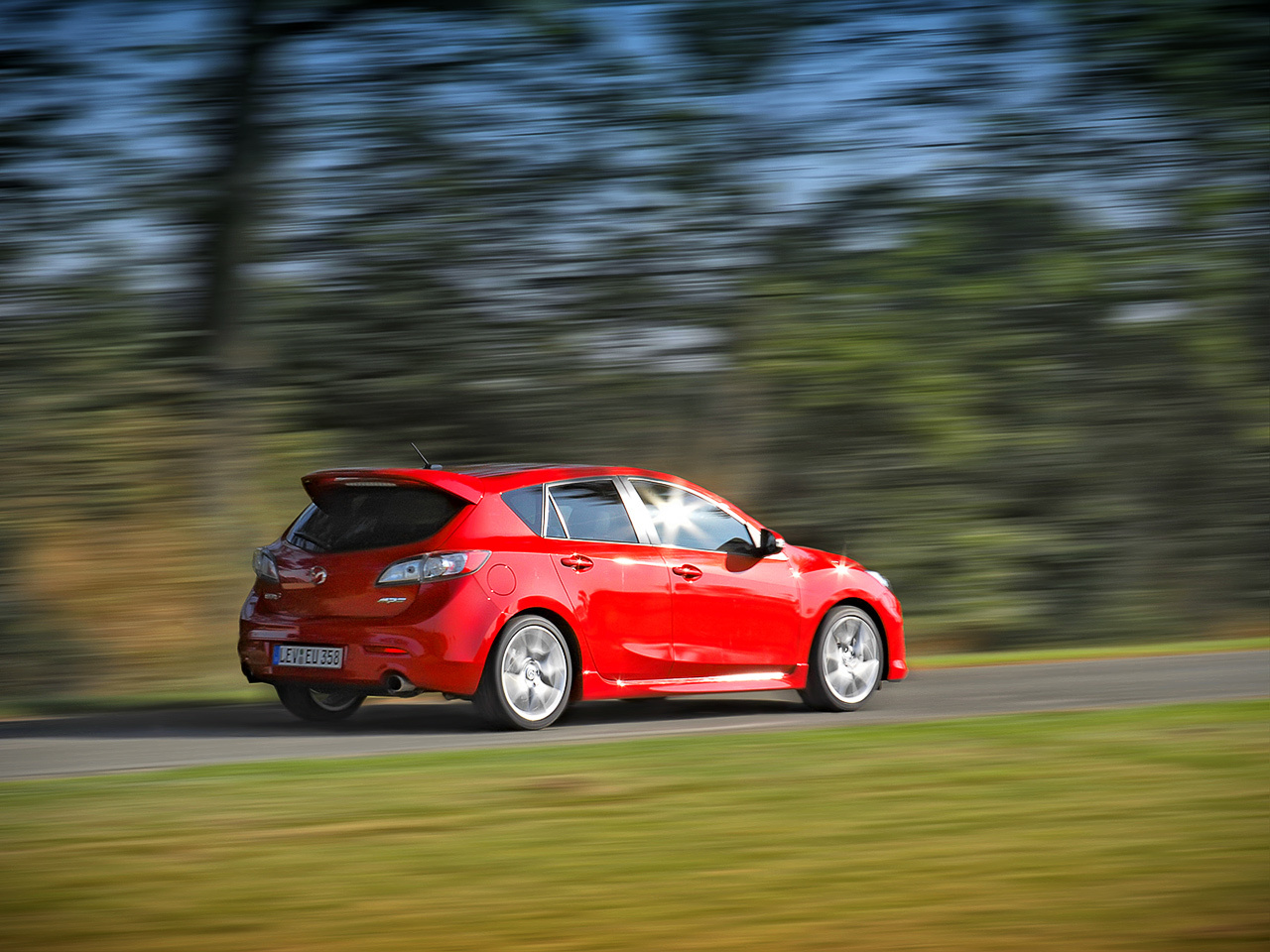 Детишек у отделения Mazda Performance Series немного. В 2005 году появился седан Mazda6 MPS с 260-сильным турбомотором DISI 2.3 и полным приводом. Неплохой автомобиль встретили достойно. И спустя год на рынок выпустили Мазду 3 MPS — хэтчбек гольф-класса с теми же двигателем и шестиступенчатой «механикой». Только вместо полного привода новинка оказалась моноприводной. Реализовывать момент помогал самоблокирующийся дифференциал, которому ассистировал продвинутый трекшн-контроль, управляющий давлением наддува. Самый мощный автомобиль в классе разгонялся до сотни за 6,1 с и развивал 250 км/ч. В смешанном цикле он потреблял 9,7 л топлива на 100 км. Могучий, быстрый, отлично оснащённый хэтч был дешевле большинства одноклассников. В результате на нашем рынке Mazda3 MPS оказалась самым продаваемым хот-хэтчем.