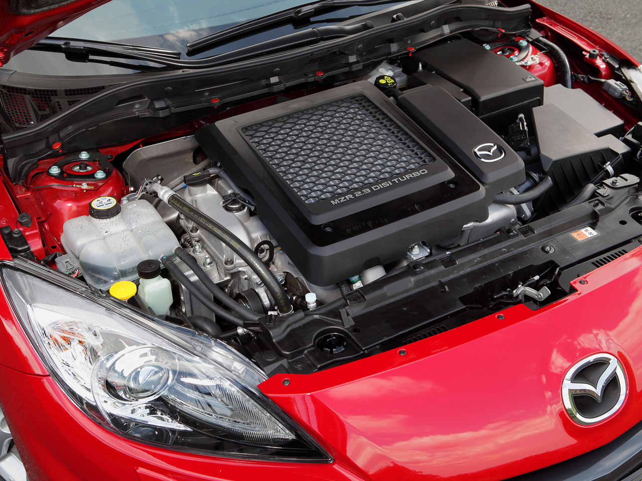 Двигатель прежний — четырёхцилиндровый MZR DISI 2.3 с турбокомпрессором и системой непосредственного впрыска топлива. Неизменными остались мощность (260 л.с.) и крутящий момент (380 Н•м). Правда, «четвёрке» сменили программы управления дроссельной заслонкой и системой впуска, а давление наддува теперь нарастает мягче. При растянутых передаточных числах коробки у новой «трёшки» MPS расход топлива в смешанном цикле на 0,1 л на 100 км меньше (9,6 л), чем у предшественницы, а выбросы CO2 снизились на 7 г/км (224). Причиной тому послужил, в частности, каталитический нейтрализатор, созданный с применением нанотехнологий и позволяющий на 90% сократить использование дорогих металлов в конструкции. Подобные катализаторы ставятся на серийные автомобили впервые.
