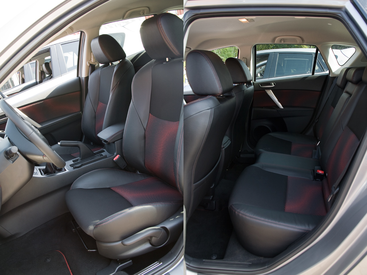 Спорт доминирует? Главный инженер проекта Mazda3 MPS Кэнъитиро Саруватари расставил акценты именно так. Дескать, кузов Мазды 3 MPS второго поколения жёстче благодаря увеличенной на 17% доле высокопрочных сталей в конструкции. Снаряжённая масса хэтчбека по сравнению с первой «эм-пэ-эской» уменьшилась на 25 кг. Впрочем, из немногочисленных технологических хитростей на своей шкуре я могу почувствовать разве что усовершенствованную ради увеличения прижимной силы аэродинамику. Ведь на максималке автомобиль теперь прилипает к земле и больше не требует подруливаний. Предшественница на скоростной прямой была капризнее.