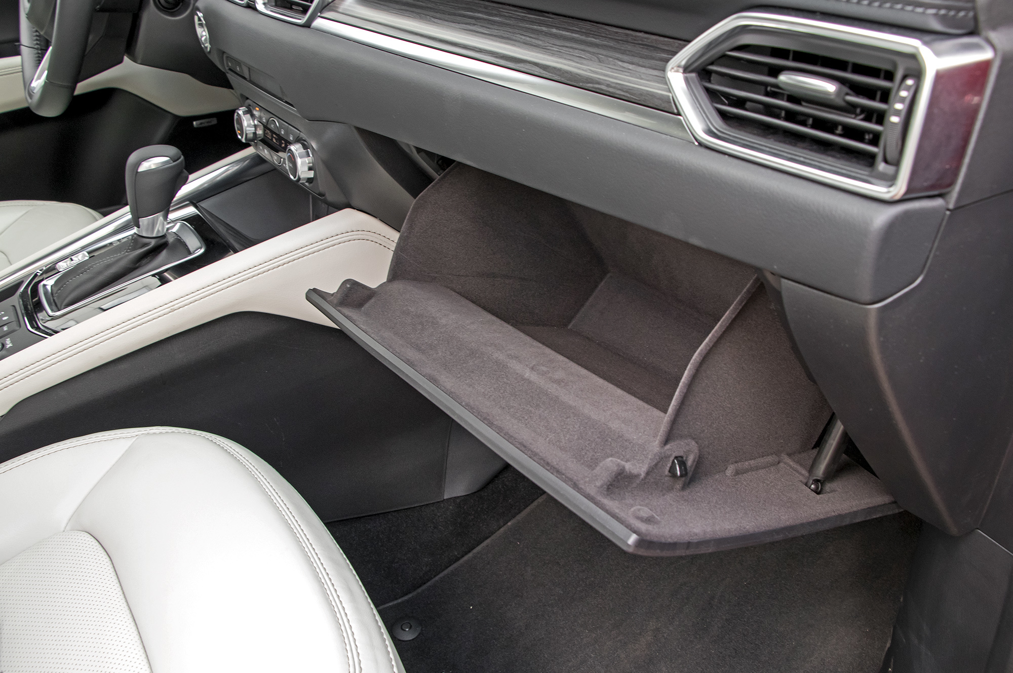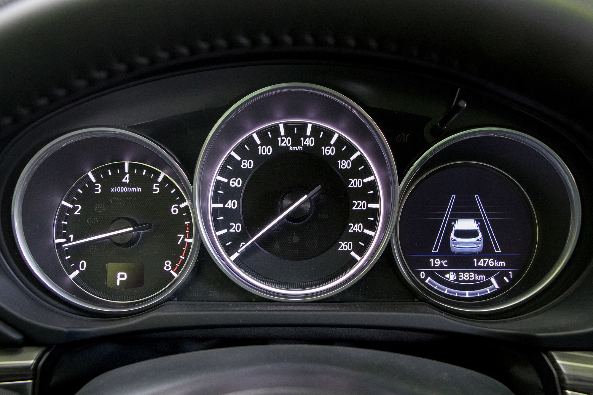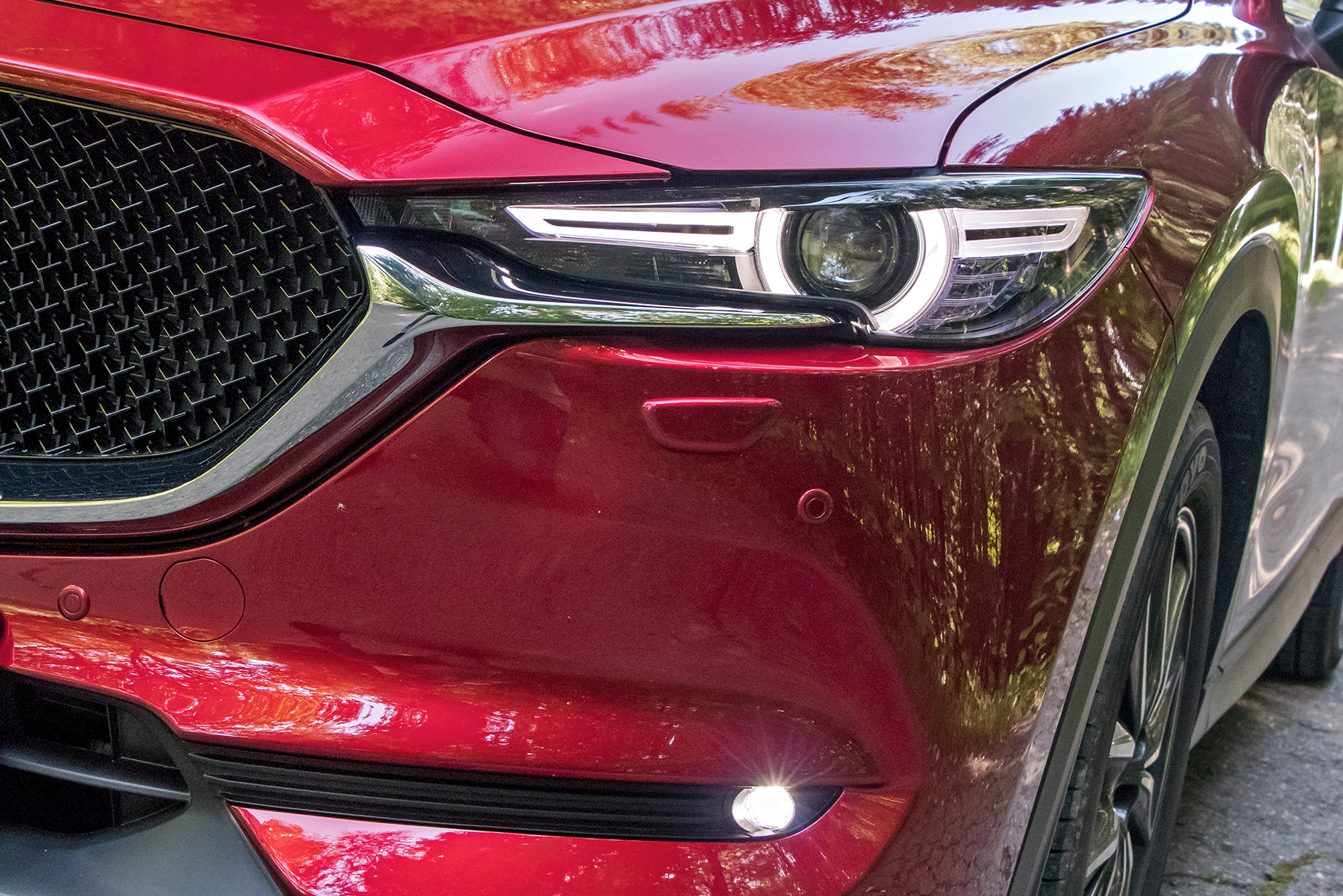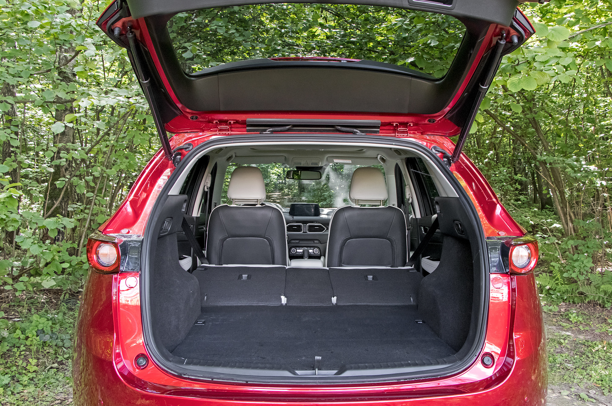 У CX-5 нет никаких внедорожных режимов или принудительной блокировки межосевой муфты. Вся надежда на внушительные 19 см просвета, которые я намерил от земли до пластикового брызговика силового агрегата. Адаптация для России на средненьком уровне: на лобовом стекле подогреваются только места парковки стеклоочистителей и зона вдоль левой стойки (там может намерзать снег, счищенный щёткой стеклоочистителя с водительской стороны), а у баранки ― лишь места хвата. Под полом багажника ― безальтернативная докатка. Впрочем, спасибо за полный подогрев двух задних сидений, пусть даже выключатели бестолково расположены внутри центрального подлокотника.