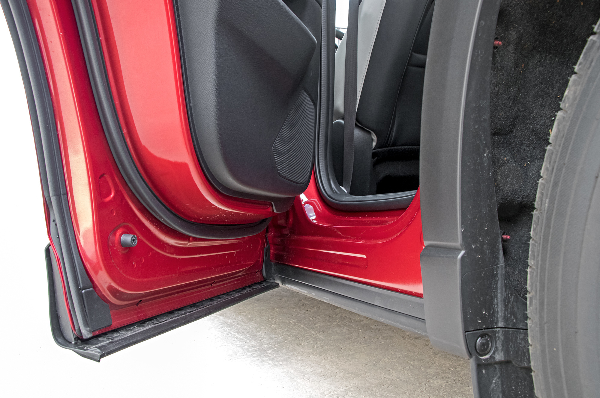 Дизайн вроде прежний, но детали творят чудеса. Решётка радиатора будто набрана из кристаллов. Глубоко искрится насыщенный красный цвет ― за такой и 32 тысячи рублей не жалко. Миниатюрные точки-прожекторы светодиодных ходовых огней и противотуманок пронизывают пыль и тлен бытия. Стойки дверей теперь закрыты глянцево-премиальным пластиком вместо дешёвой матовой плёнки. Только гигантские зазоры шириной до сантиметра по периметру пятой двери выбиваются из благостной картины.