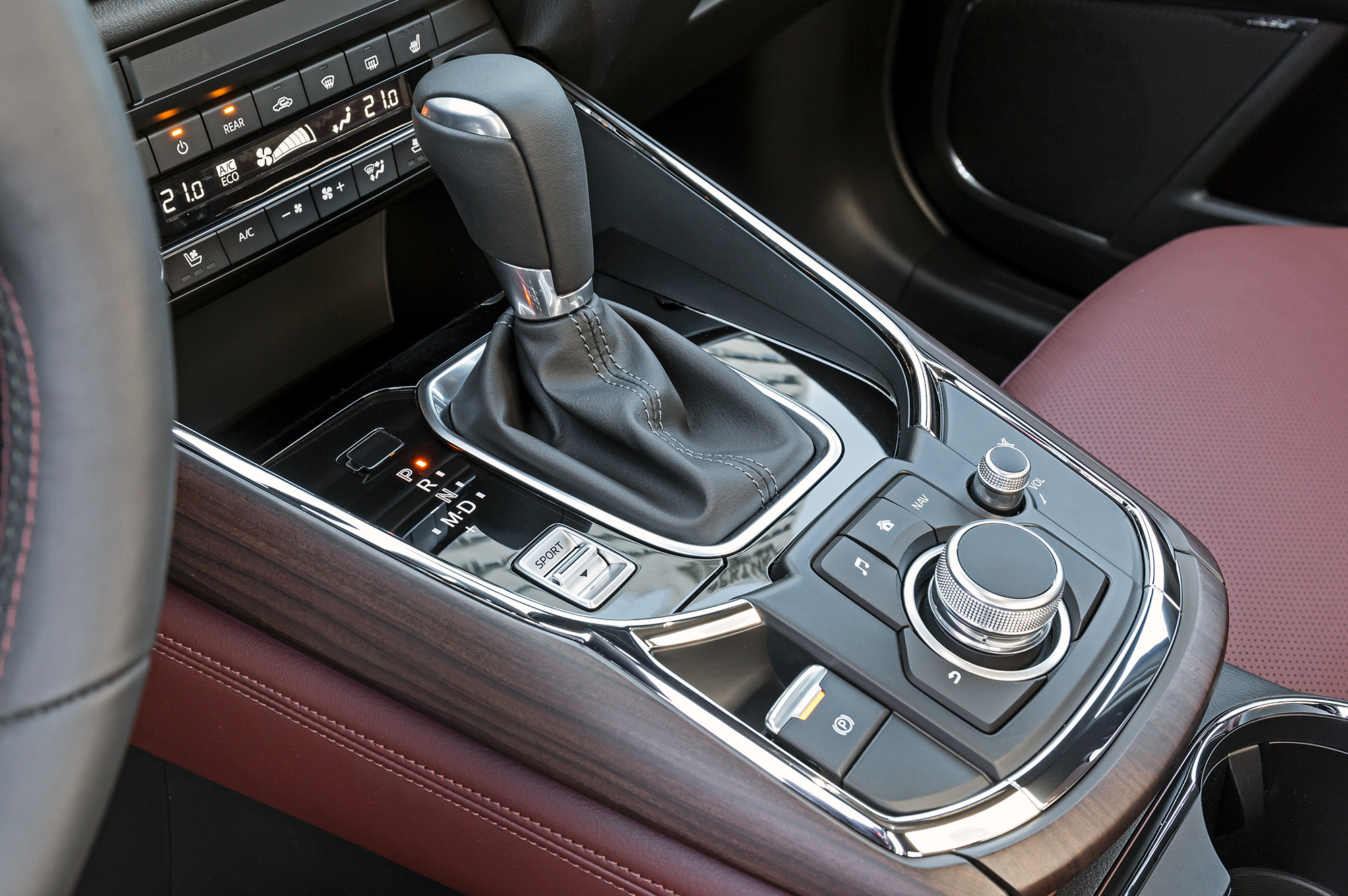 Великолепная связка турбомотора с «автоматом» оставлена без изменений — и правильно: кроссоверу хватает 231 л.с. что для энергичных стартов, что для быстрых обгонов. Шестиступенчатая коробка предельно плавна, даже когда ты вынуждаешь её сбрасывать две-три передачи. Разве что с небольшой задержкой CX-9 отвечает на робкую прибавку газа. Но есть умеренно злой спортрежим: он и люфт убирает, и вполне годится для постоянного использования.
