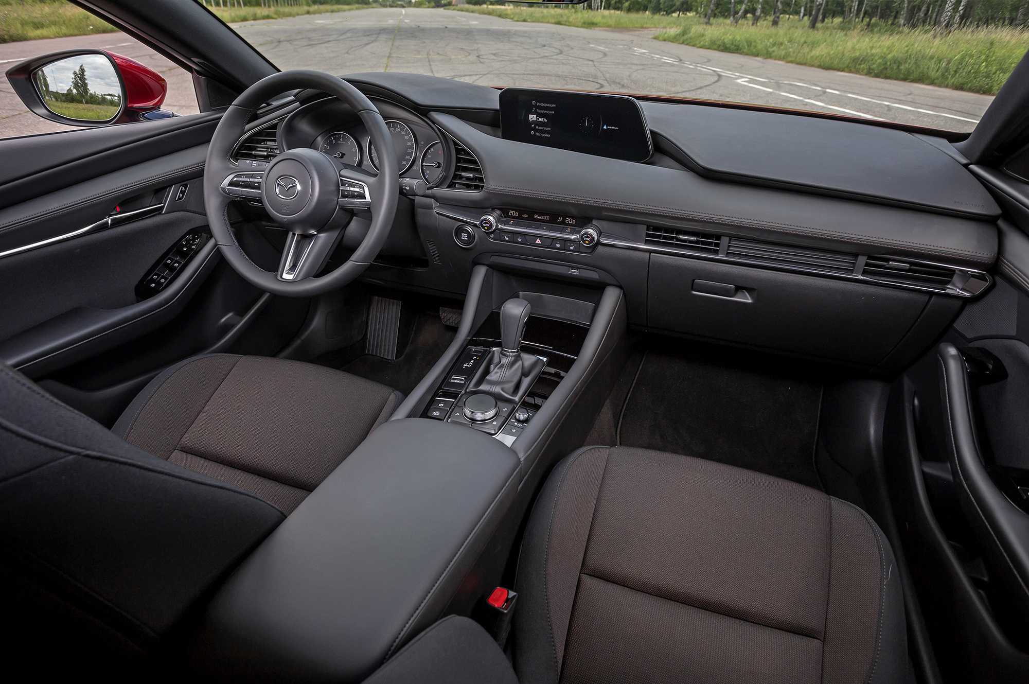 На тест-драйве в Сербии все машины дороже 1,8 млн. Как ни странно, более мощные версии хуже оснащены. Просто живых топовых хэтчбеков 2.0 Supreme мощностью 150 л.с. пока нет в распоряжении российского представительства. Зато полуторалитровые Мазды как раз упакованы по максимуму, включая опционный пакет с обширным набором систем безопасности за 126 тысяч.