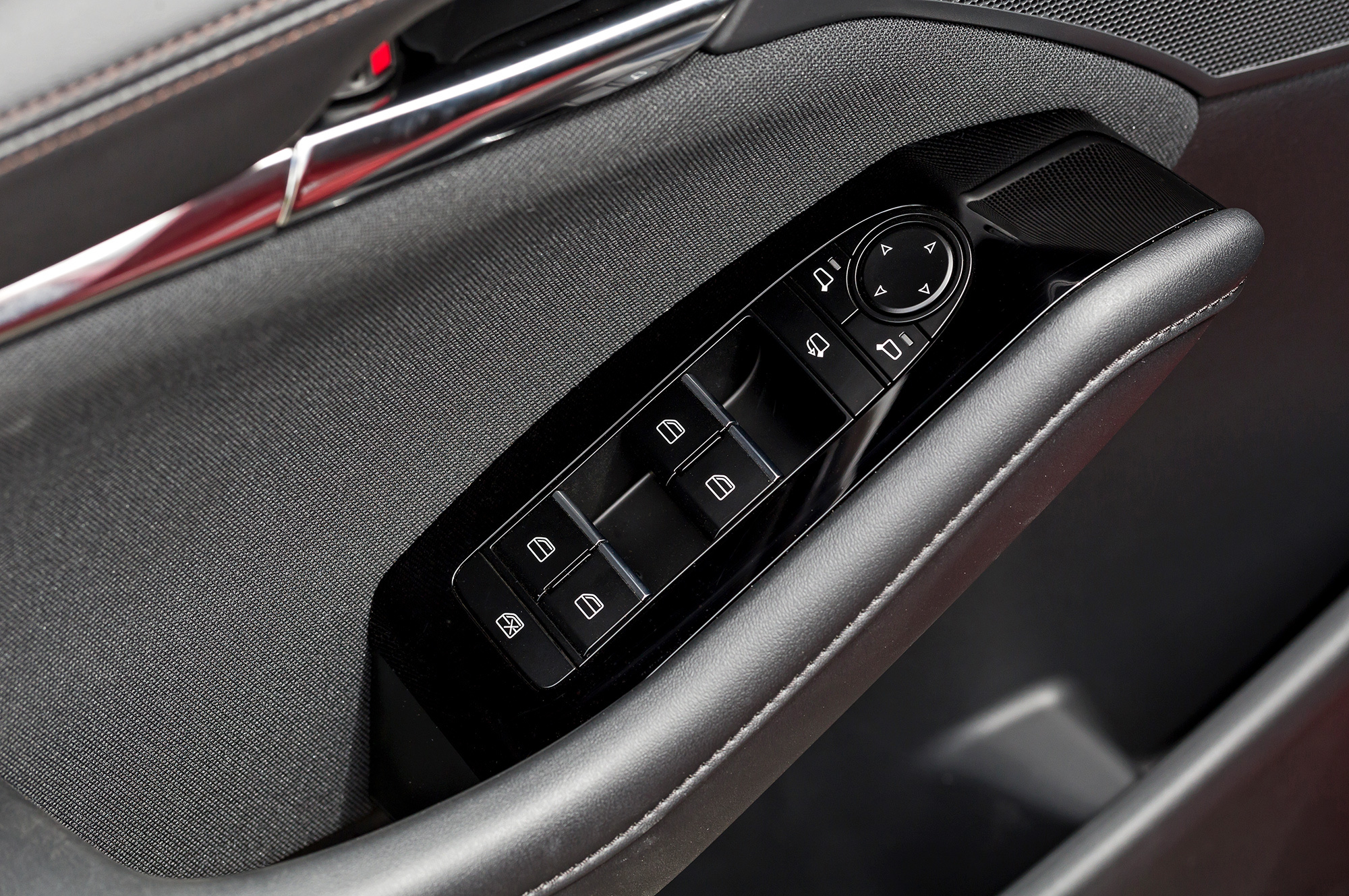 Спереди отмечаю впечатляющие диапазоны регулировки рулевой колонки и кресел. В топ-версии водительское электрифицировано, в комплектации попроще все настройки механические. Посадка удобна, обзорность вперёд хороша: передние стойки не слишком широки, а зеркала неправильной формы закреплены на ножках и чуть отнесены назад. Окно пятой двери невелико и отчасти перекрыто подголовниками. У топ-версии внутреннее зеркало электрохромное, как и наружное со стороны водителя.