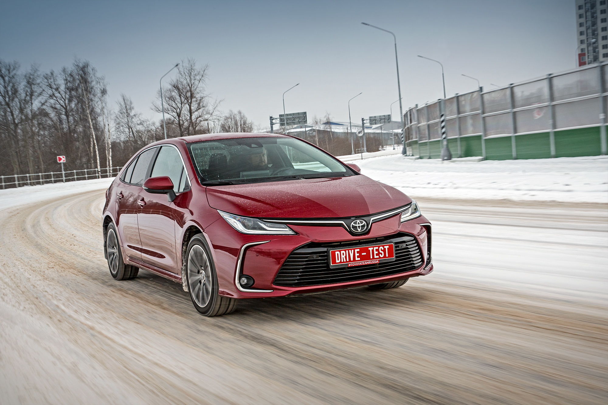 У Короллы между мотором и колёсами находится вариатор. При размеренном движении он не пытается выглядеть «автоматом», отчего отклики на газ немного ленивы. Едешь быстрее ― проявляется «ступенчатость». Но непонятно, где здесь заявленные полторы секунды преимущества перед Маздой в разгоне 0–100 км/ч. Субъективно динамика не отличается, а провести замеры не позволяет покрытие. Тормозами пользуешься без ошибок, хотя здесь самый большой ход педали, в том числе при экстренном торможении.