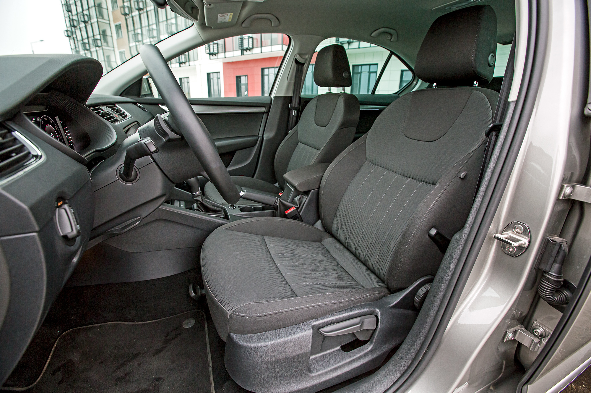 Маздовская посадка за рулём низка и спортивна, а тканевое кресло отлично держит в поворотах. Недостаёт только регулировки поясничного подпора — если сзади кто-то коленями не упрётся... Хороши ощущения и за рулём Шкоды, но некоторые жалуются на большой перепад высот между педалью тормоза и акселератором, особенно ощутимым в зимних ботинках на широкой подошве. А ещё в Октавии пожёстче подлокотники.