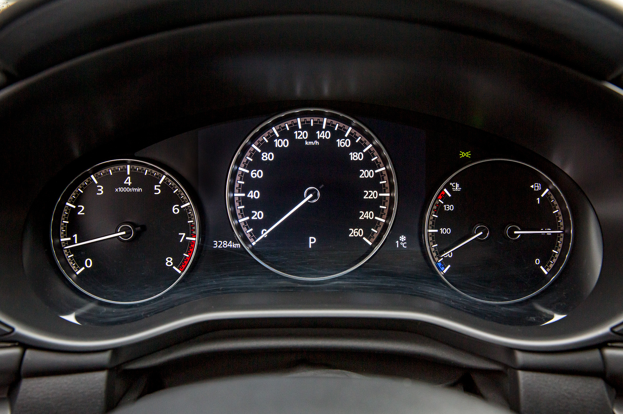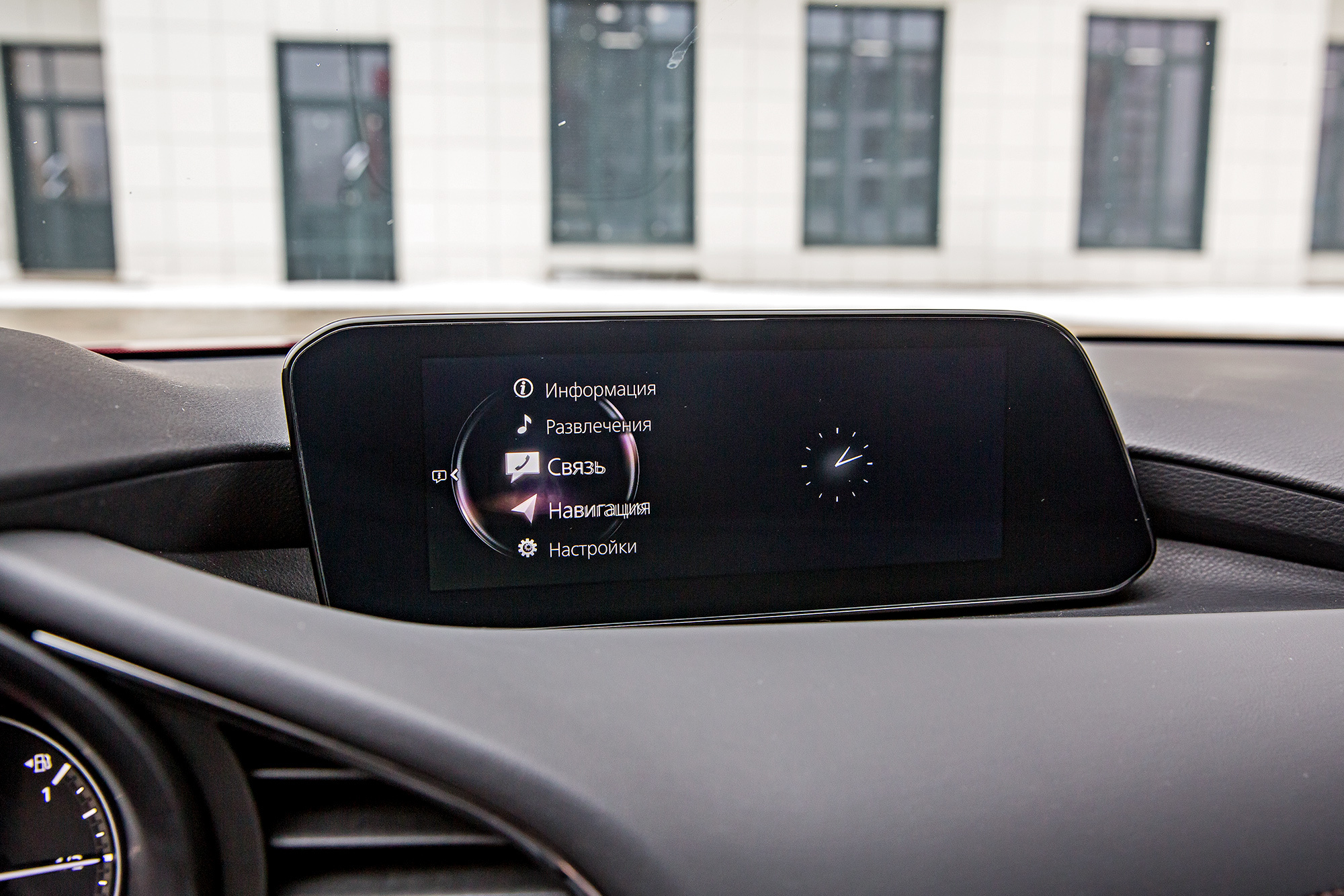 Поверхности вылеплены с душой. В этот интерьер с низкой посадкой хочется возвращаться снова и снова. Mazda одновременно уютна и современна. Изящно интегрирован в панель дисплей медиасистемы. Низкий экранчик не очень удобен при работе с навигационной системой (опция), но остальные функции не страдают. Именно приборы Мазды с отображённым на крупном дисплее спидометром можно назвать эталонными в тесте. Информация выводится ещё и на лобовое стекло.
