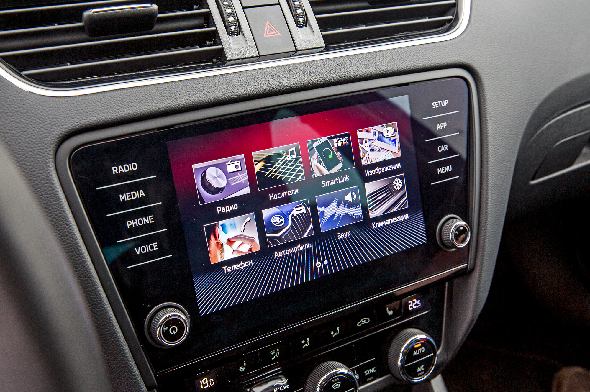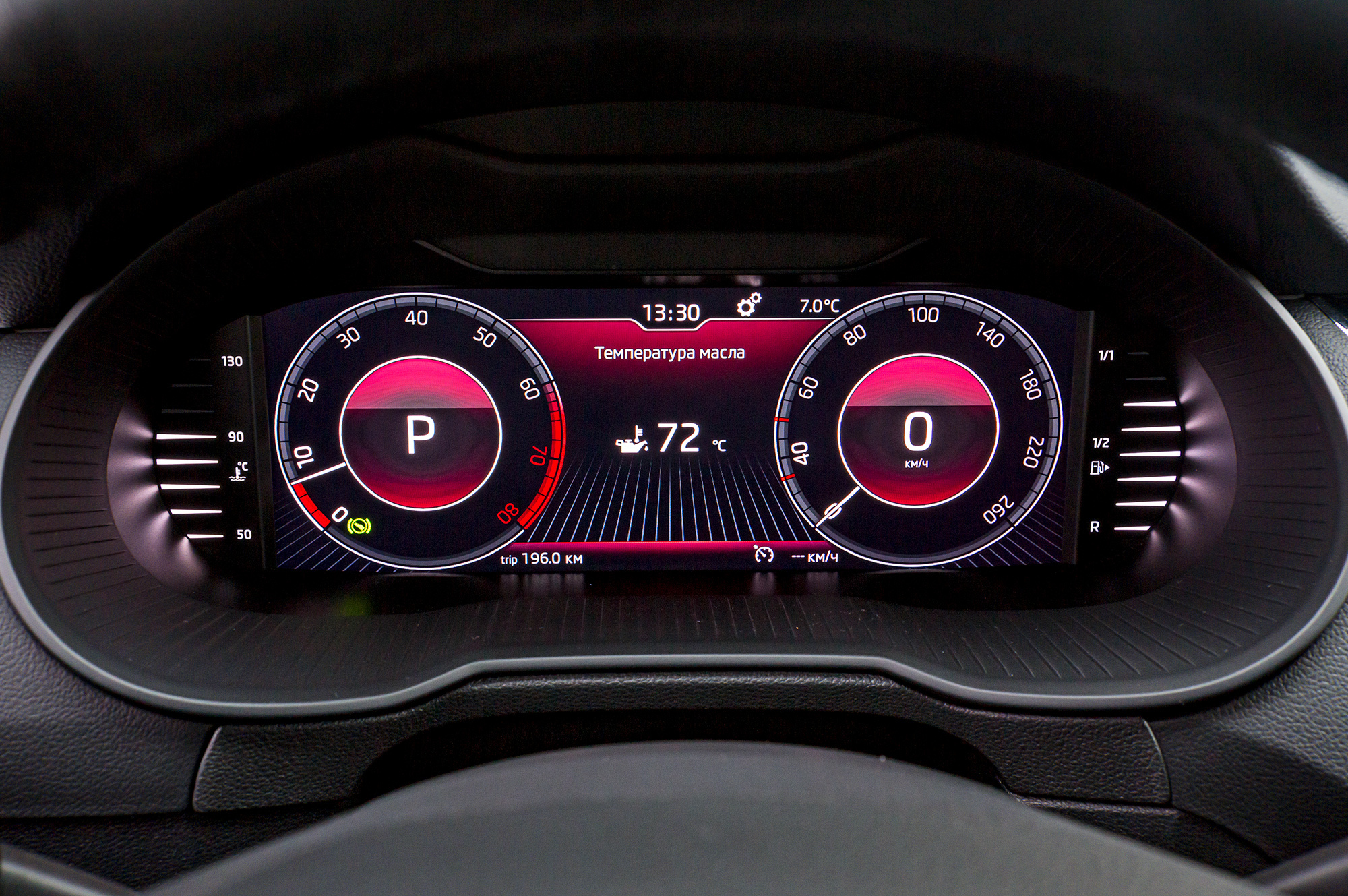 Это, возможно, последний тест Октавии уходящего поколения, и, конечно, чувствуется её возраст. Особенно если с пристрастием отнестись к виду отделочных панелей в салоне. Но Skoda за такие деньги не так и проста. Бардачки с карманами отделаны мягким материалом, существенно шире список приятных мелочей вроде крючков для одежды и USB-гнёзд. Электронный щиток приборов не идеален, но весьма технологичен.