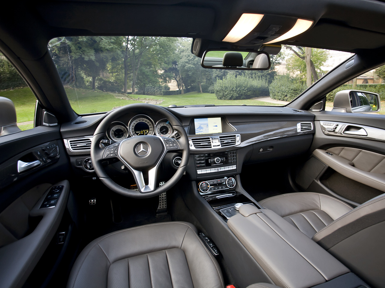 Салон тоже существенно шире: места для пассажиров обоих рядов больше и в плечах (на два-три сантиметра!), и в локтях. Но подоконники высоки, и по сравнению с «ешкой» CLS кажется более тесным. Часы исключены из комбинации приборов и смещены на ось симметрии передней панели, как в S-классе. Блок управления климат-контролем — в стиле С-класса. Или купе SLS — кому как нравится...