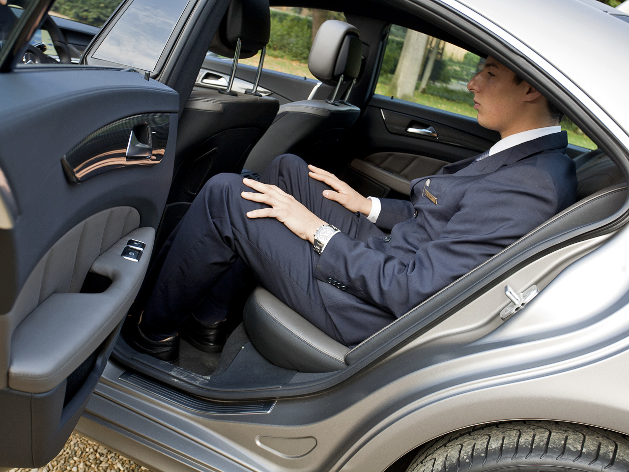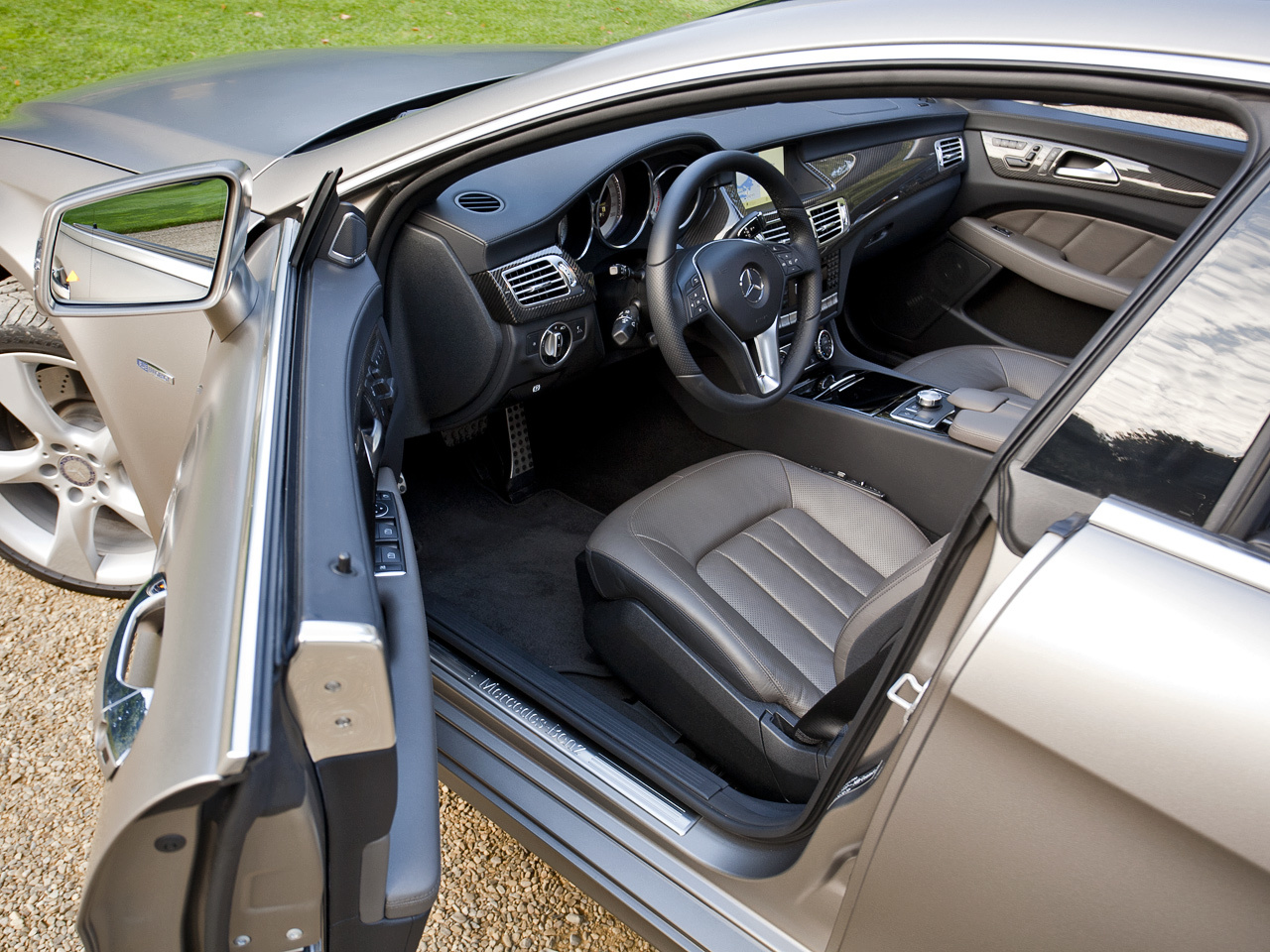 Даже на месте заднего пассажира я чувствую себя вполне уютно. По сравнению с машиной предыдущего поколения тут больше простора в коленях, добавился и небольшой запас «воздуха» над головой. Нужно только при посадке не выколоть глаз об угол стекла безрамочной двери. Она открывается на столь небольшой угол, что садиться в CLS лучше всего спиной вперёд, опуская сперва пятую точку, а потом занося ноги — словно в спорткар с низким и широким порогом.