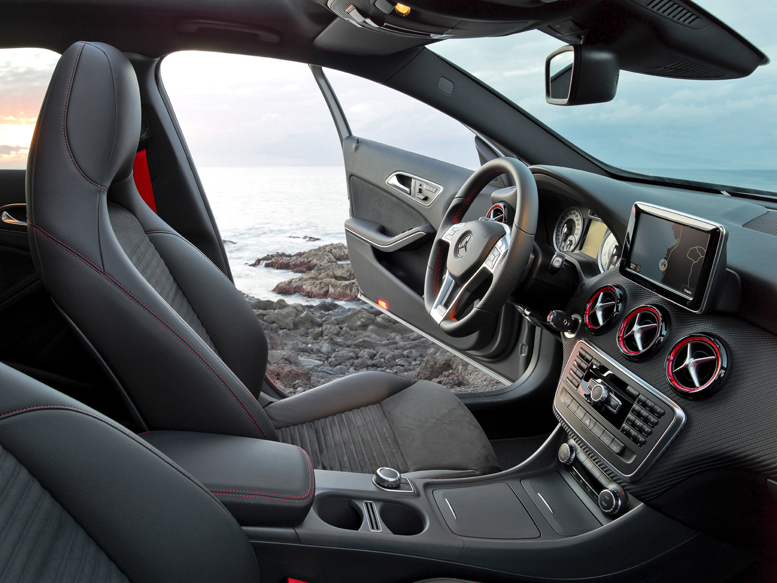 Разумеется, оттенки и нюансы имеются во всём и всегда. Взять, к примеру, засекреченную до 2013 года гоночную версию A 45 AMG. Эта машина, на которую прессе дали взглянуть краем глаза, отобрав фототехнику и телефоны, обладает точь-в-точь таким же интерьером, как любая другая модификация. Тут остались все красоты и блага: «музыка», «климат», смартфон на колёсах... Всё то же самое, если не брать в расчёт трубчатый каркас безопасности, всякие дизайнерские росчерки по салону и яростный обвес.