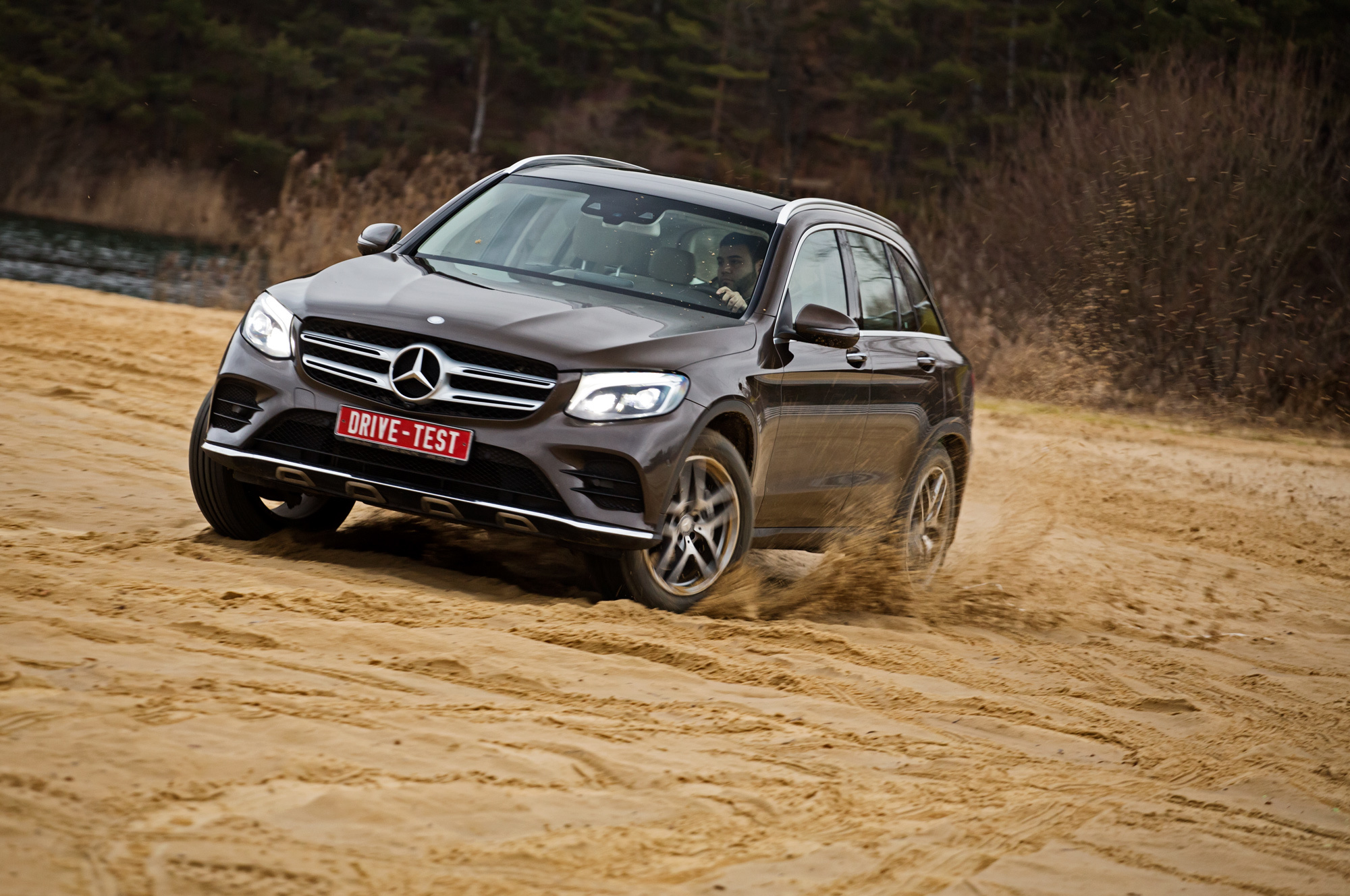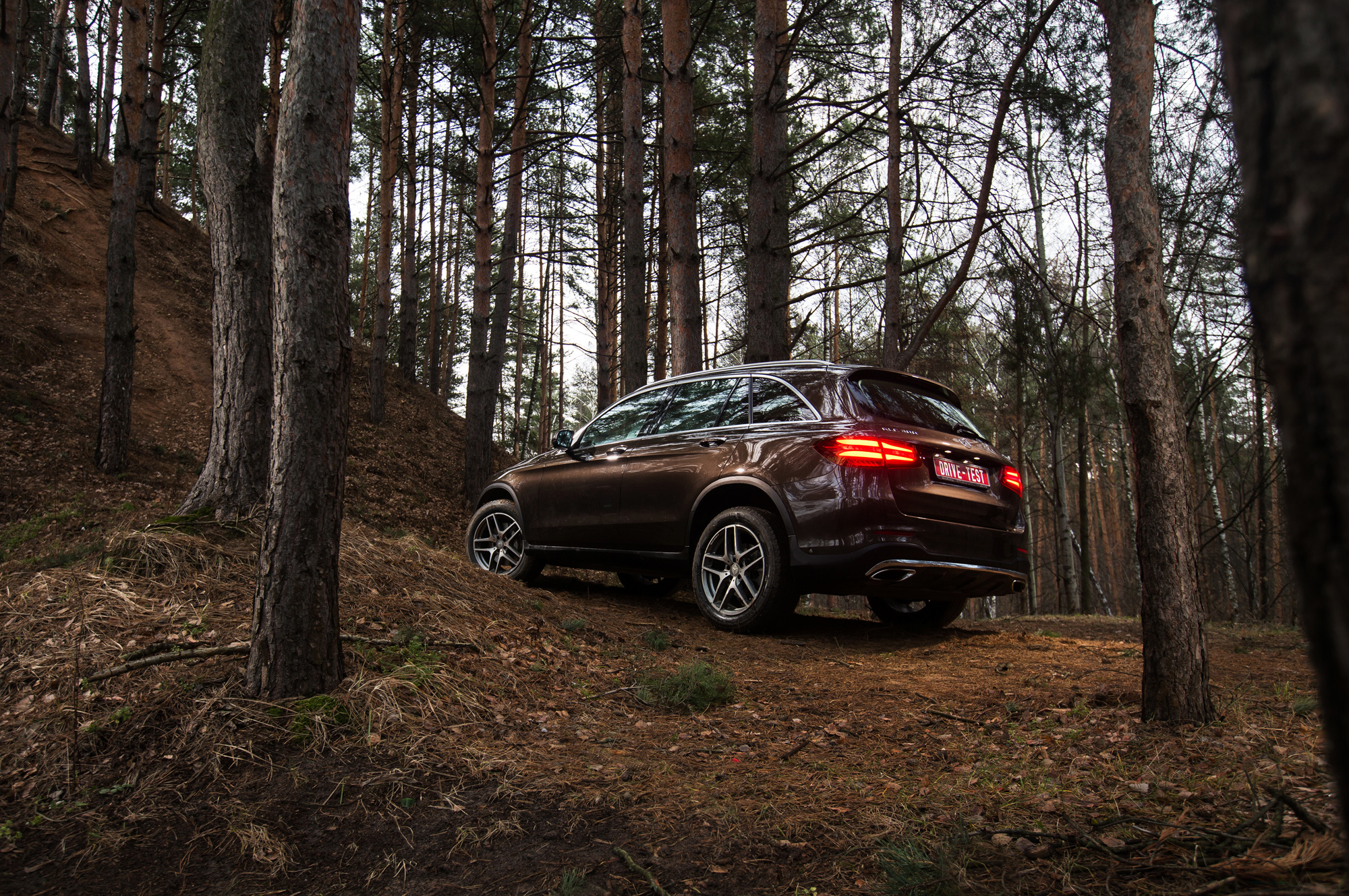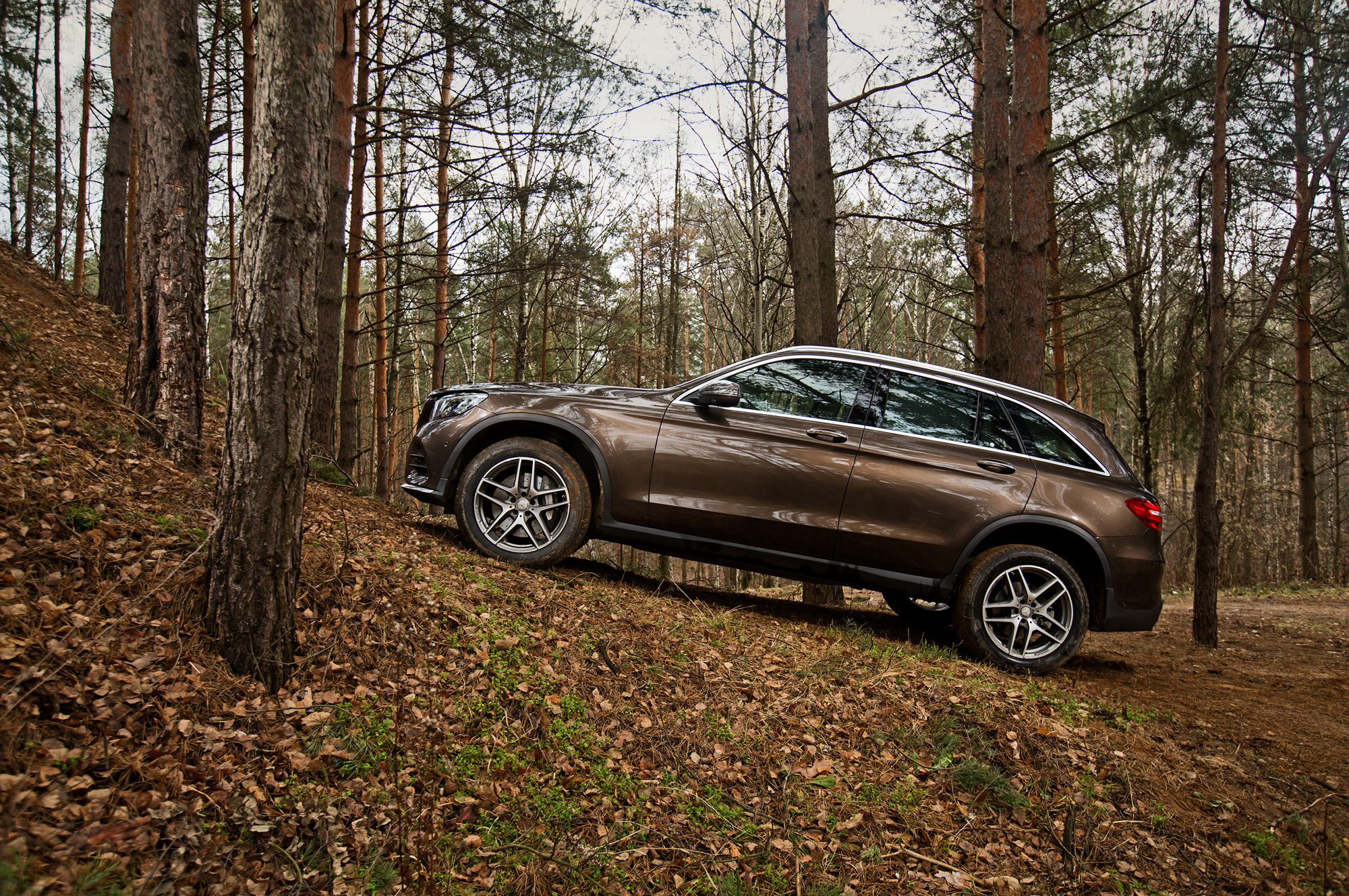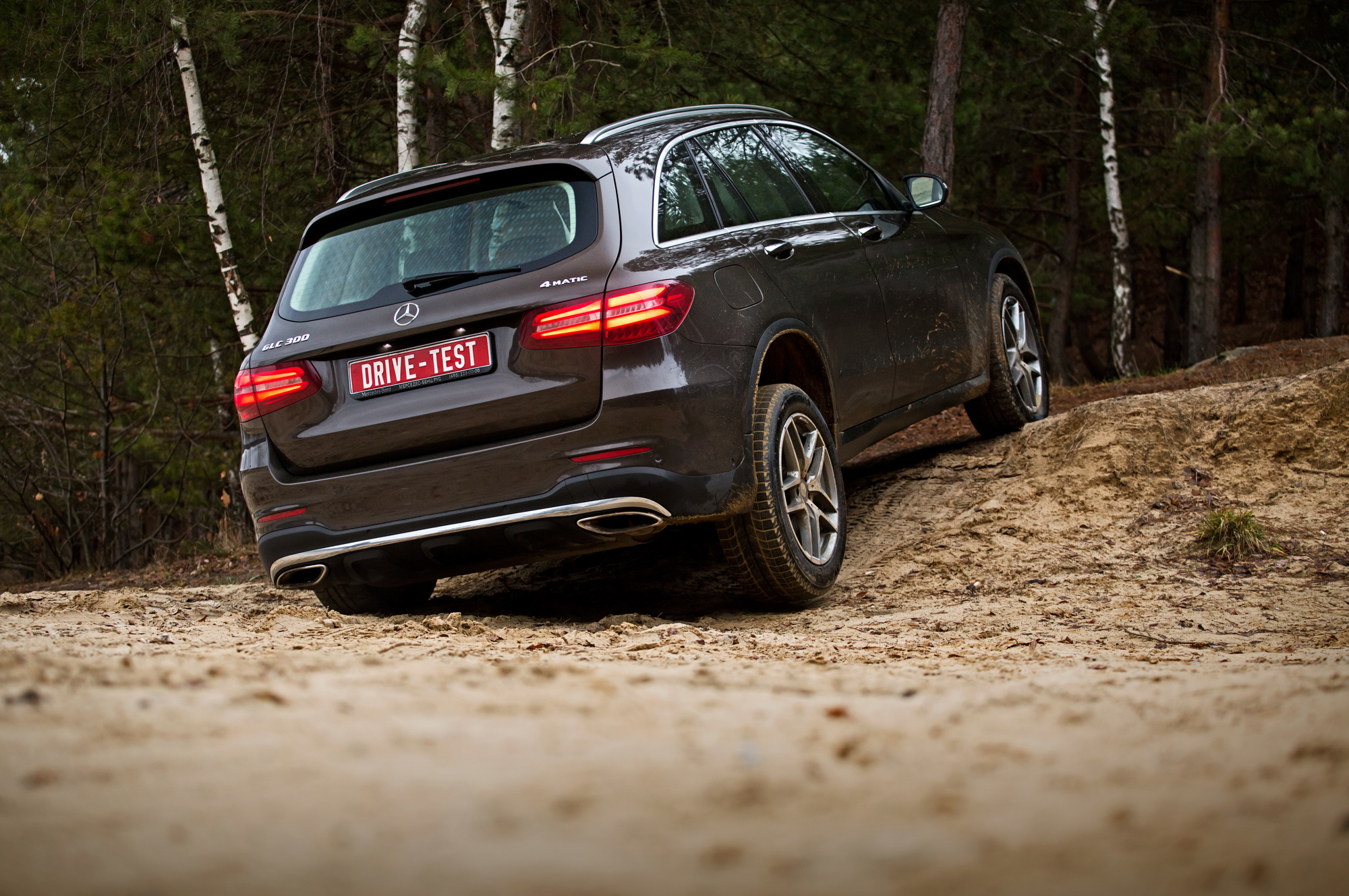 Вне асфальта подвеска с грохотом капитулирует, едва скорость превышает 40 км/ч. Тут уже удары проходят и на руль. Обидно. Ведь наш GLC 300 4Matic оснащён offroad-пакетом: клиренс за счёт пружин увеличен на два сантиметра до 201 мм, под днищем прилажена металлическая защита, а к режимам управления силовым агрегатом и системой стабилизации добавлены внедорожные алгоритмы. Электроника умело имитирует блокировки, у машины небольшие свесы и достаточно плоское брюшко... Но GLC в буквальном смысле отбивает желание съезжать куда-то с твёрдого ровного покрытия.