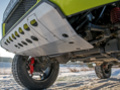 Для серийных внедорожников проходимость варианта G 500 4x4², понятно, запредельная — чисто геометрически он засядет там, куда они просто не доедут. Но тягаться с подготовленными офроуд-монстрами ему мешают универсальные шины Pirelli Scorpion, а главное — лишний вес. Пока мы снимали для видеоролика работу блокировок всех трёх дифференциалов вкупе с «понижайкой», этот медвежонок разрыл в снегу такие ямы, что сам из них только с помощью блокировок и вылез. Актуаторы блокировок, кстати, заставляют ждать то включения, то выключения, а вот выборочное подтормаживание колёс в более простых ситуациях работает отлично.