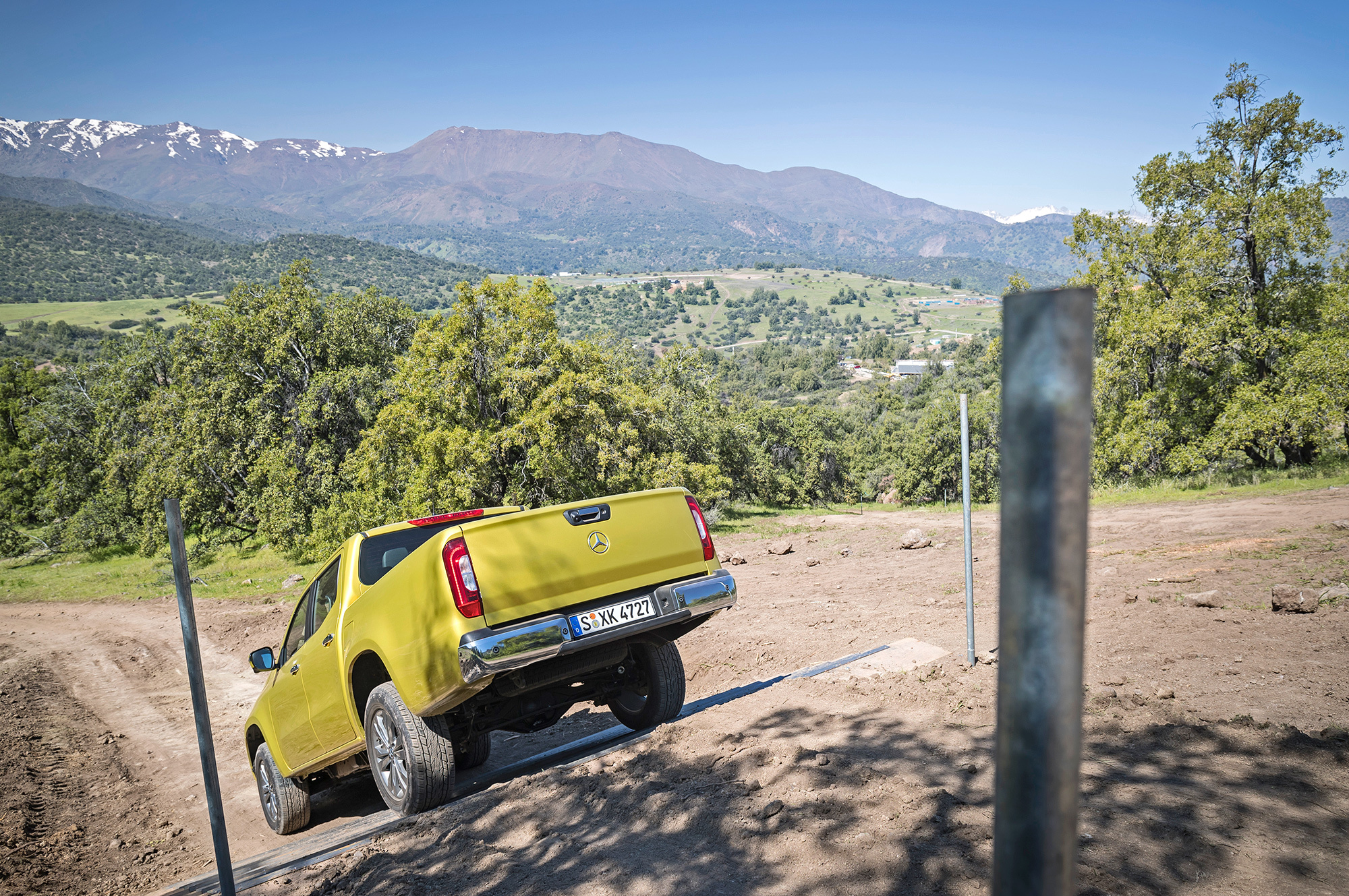Все российские Х-классы будут полноприводными, но первое время — только с жёстким подключением передка для тяжелых дорог. Задействовать его можно на скоростях до 80 км/ч, но для активации понижающей передачи придётся остановиться. На сухих грунтах Чили вопросов к проходимости не возникает ― даже задний бампер не мешает на перегибах. Кстати, при заказе от него можно отказаться. Электроника, включая систему помощи при спуске с холма, настроена на мягкую и аккуратную работу газом, однако «автомат» в ручном режиме, увы, сам переключается вверх. И вместо заявленных 222 мм под балкой заднего моста я намерил только 210.
