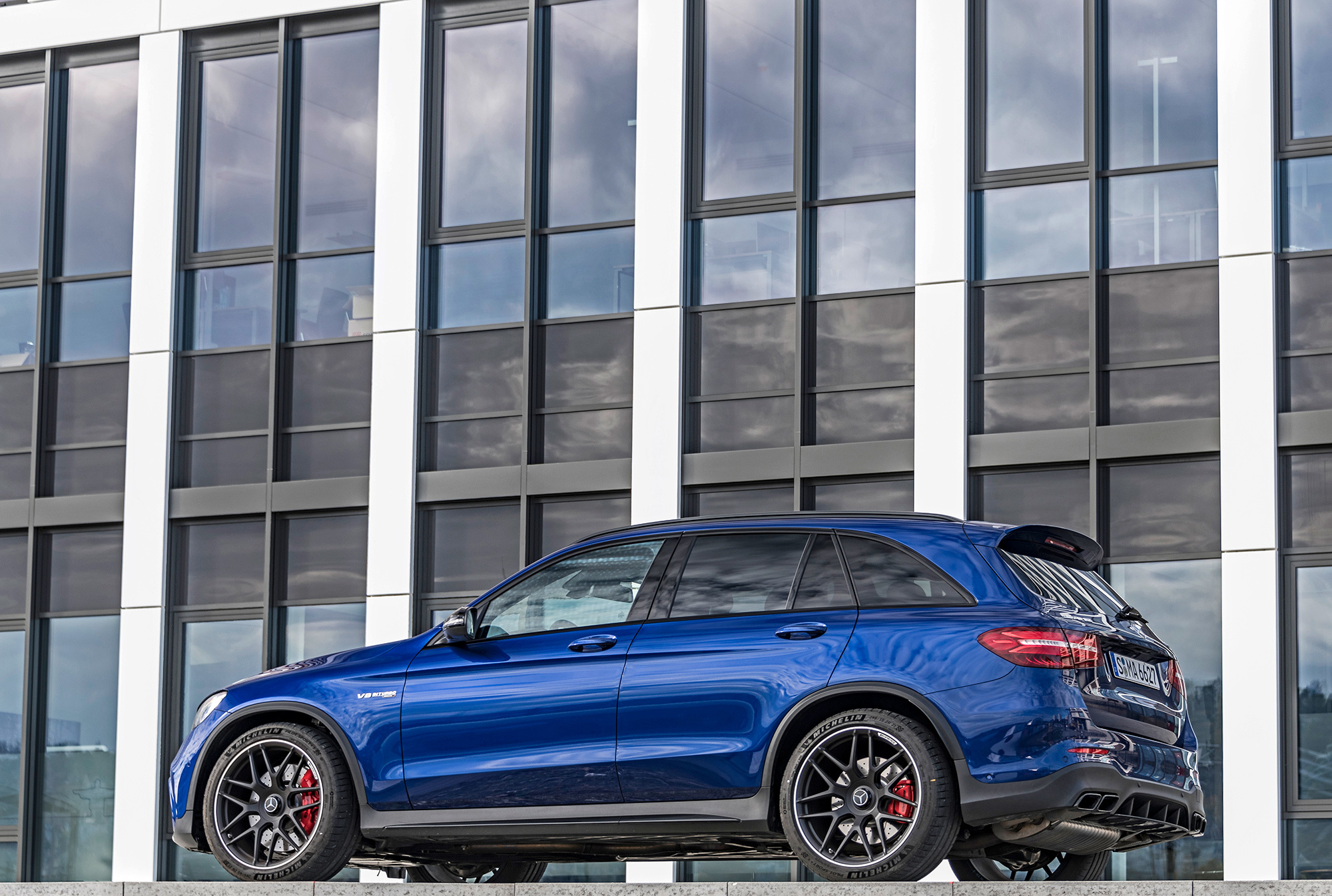 У близкой по мощности Альфы Stelvio Quadrifoglio — на два цилиндра меньше, как и у ожидаемых к концу десятилетия «эмок» X3/X4. Да, под капотом GLC не легендарный «атмосферник» M156 или свирепый наддувный M157 от больших кроссоверов. Да, объём — «лишь» четыре литра. Тем не менее настоящая «восьмёрка». С двумя турбокомпрессорами в развале блока и неистовым темпераментом.