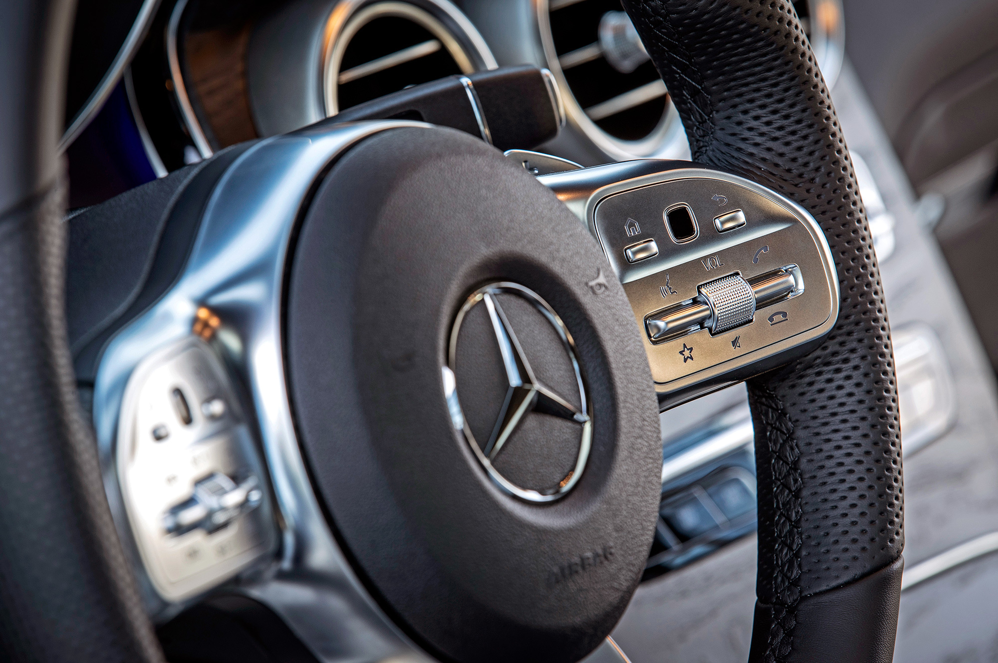 К эргономике, впрочем, и не было вопросов ― кроме чрезмерно толстых стоек лобового стекла и скудного обзора в салонное зеркало на версии Coupe. Два маленьких тачпада на спицах нового руля (левый управляет цифровым щитком, правый ― центральным экраном) работают вменяемо. Чего не скажешь о сенсорном «грибе» на тоннеле, ради которого немцы отказались от удобной шайбы.