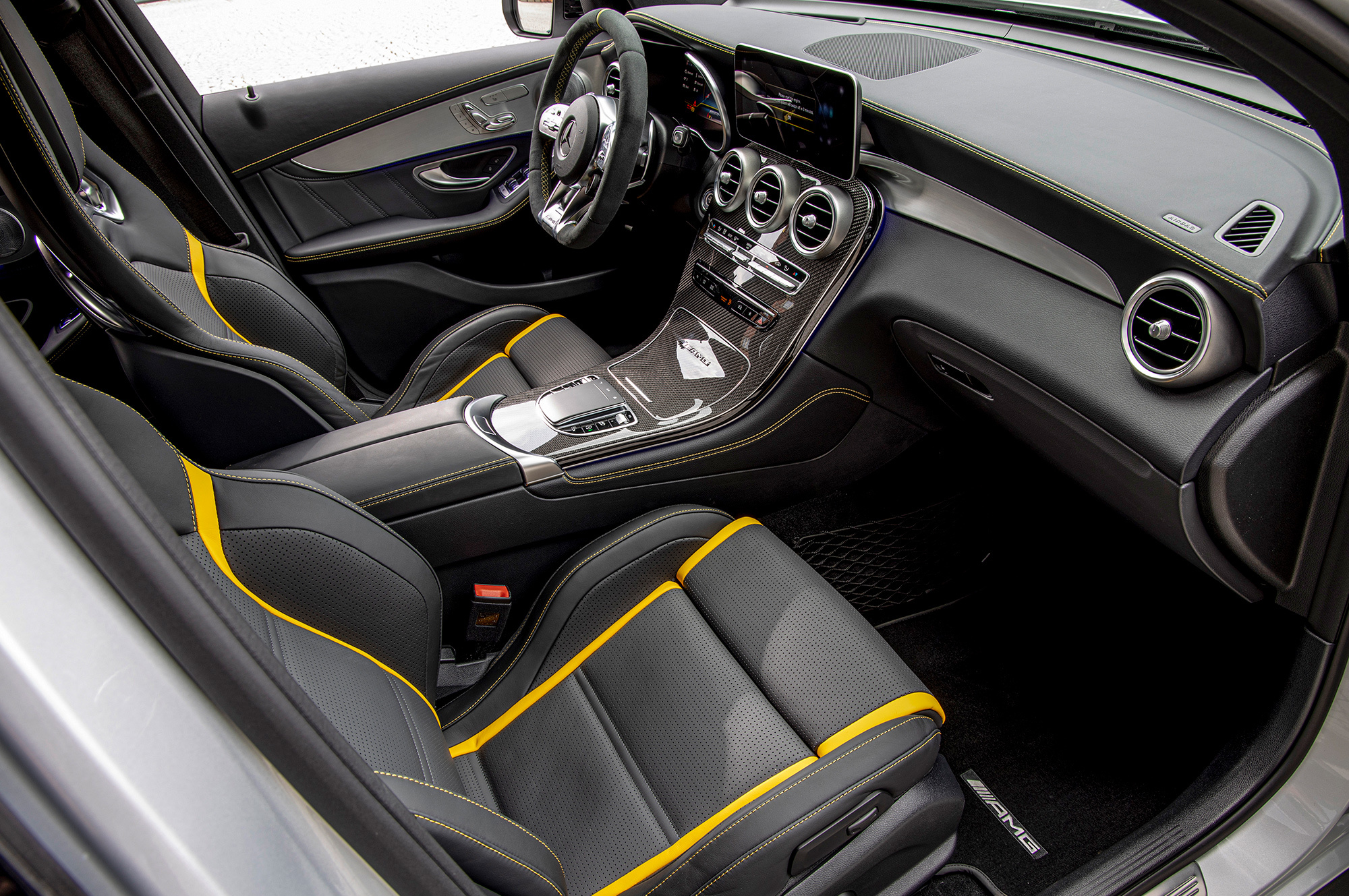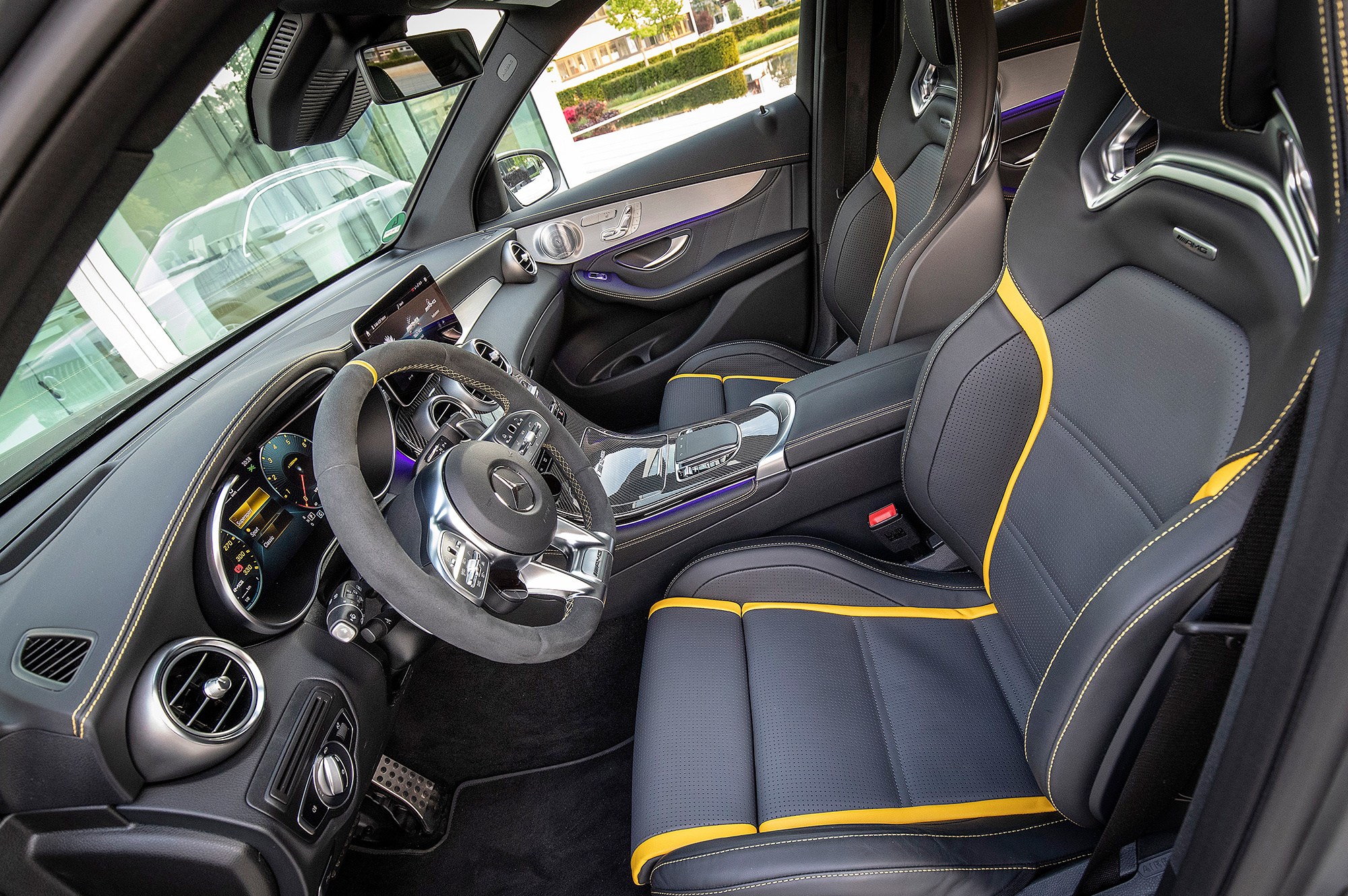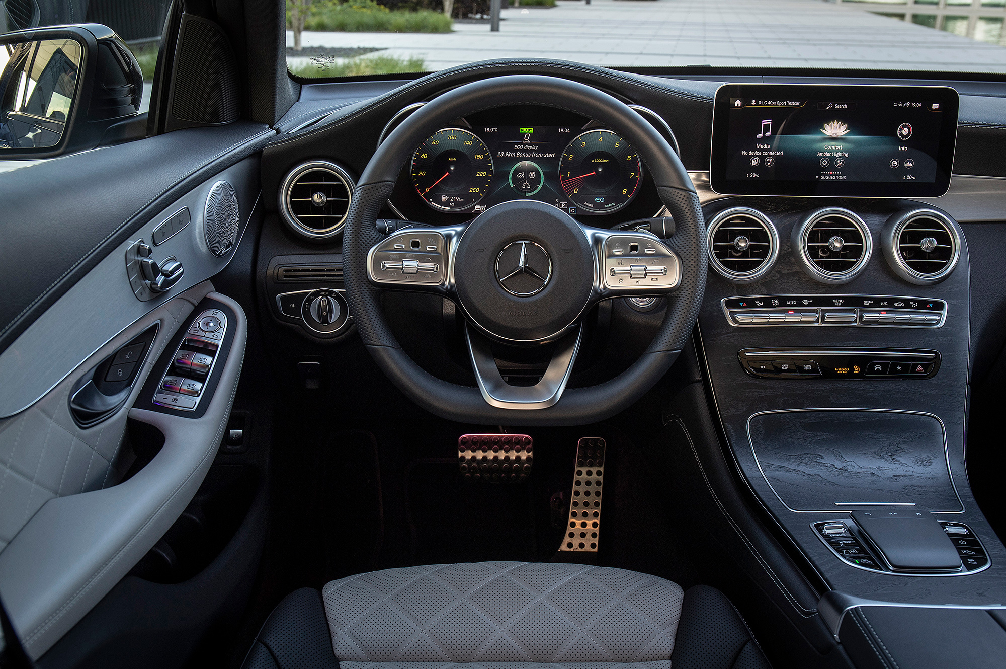Следы дизайнерской работы заметны, только если рядом поставить обновлённый GLC и дореформенный. Кузовные панели не менялись, и, помимо прочего, это означает отсутствие уплотнителей по нижней стороне дверей. Причём и без дополнительных резинок требуется чувствительный хлопок при закрывании. Интерьер хорошо знаком. Разве что GLC переведён на новейшую медиаплатформу MBUX: диагональ центрального «планшета» выросла до 10,25 дюйма, а второй дисплей диагональю 12,3 дюйма может заменять приборную панель. Но фурнитура осталась прежней, и в целом на фоне, например, А-класса, где дисплеи вписаны в панель, салон GLC выглядит простовато.