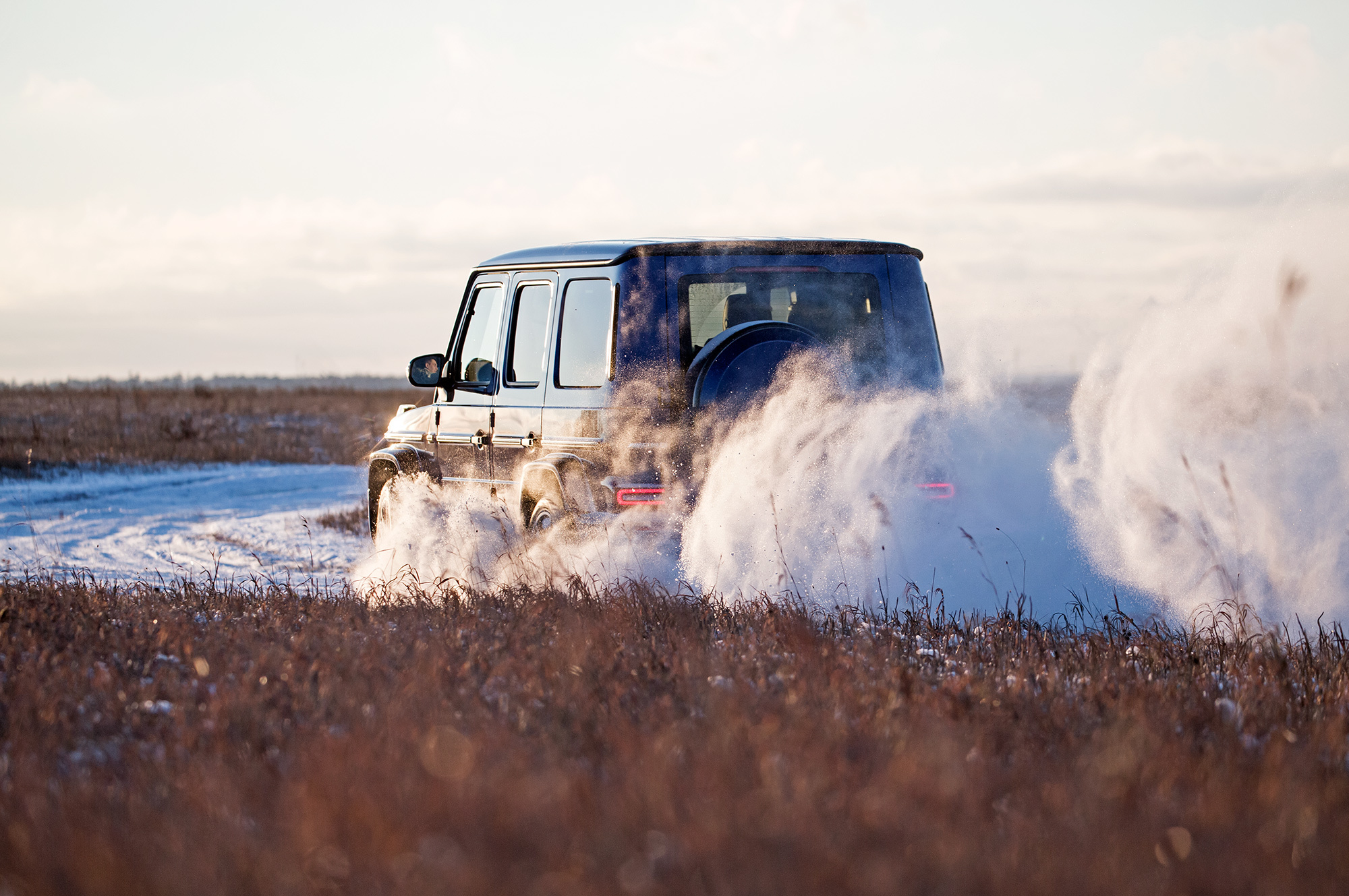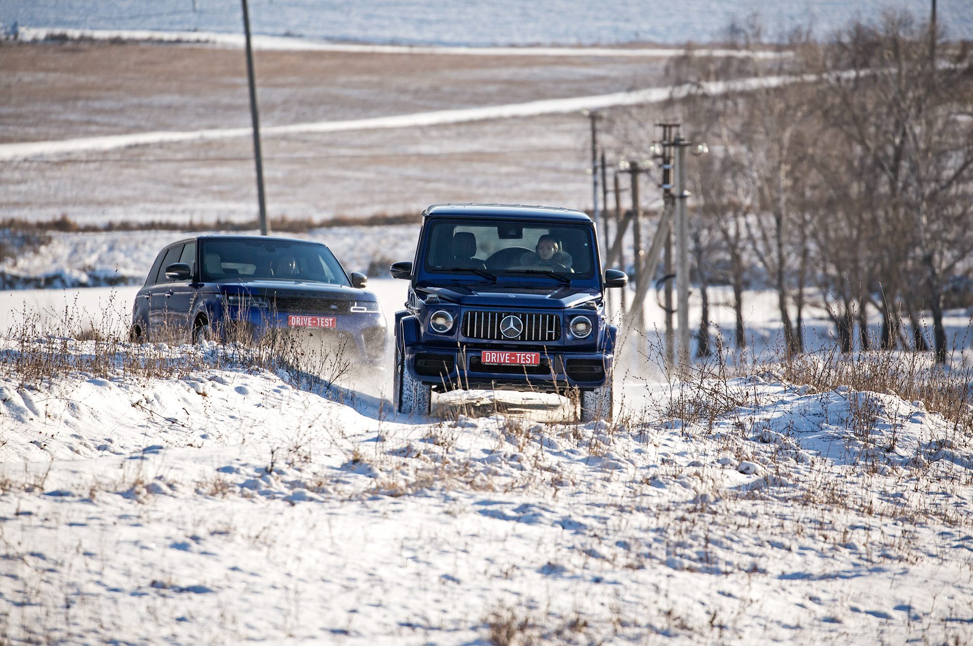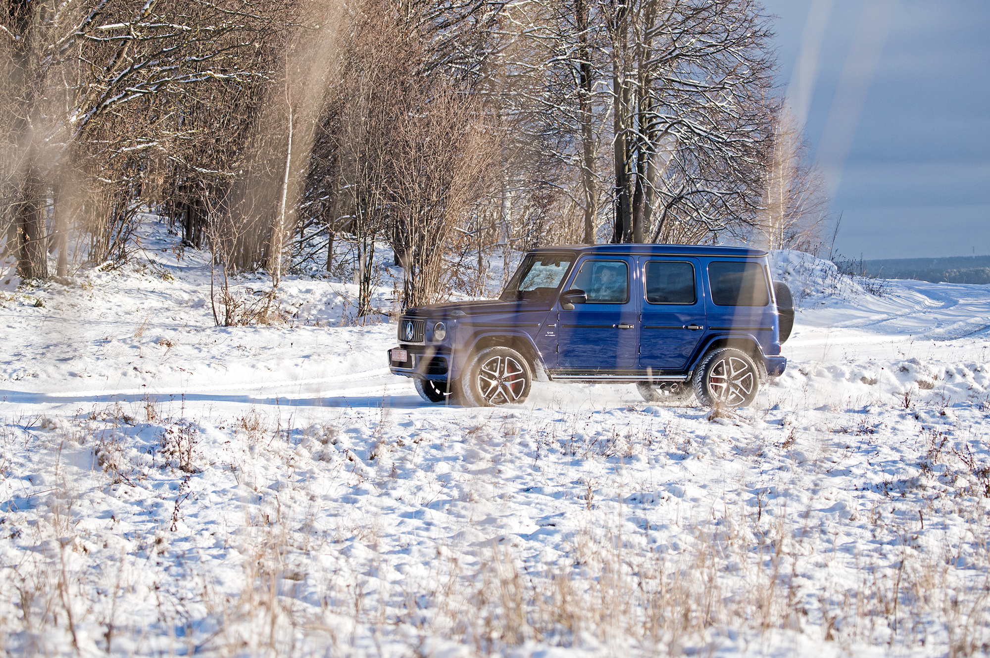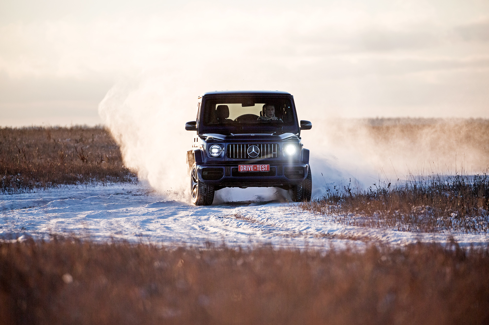 Непреодолимых препятствий на нашем пути не предвидится. Тонкий слой снега скрывает промёрзший песок. Но даже в таких условиях нужен разведчик, и на эту роль лучше подходит G-класс, благодаря меньшим свесам и непробиваемой пружинной подвеске. Недюжинная тяговитость битурбовосьмёрки освобождает от необходимости пользоваться «понижайкой» на сложных участках. Плавно наращивай паровозную тягу точным акселератором, и проблем не будет.