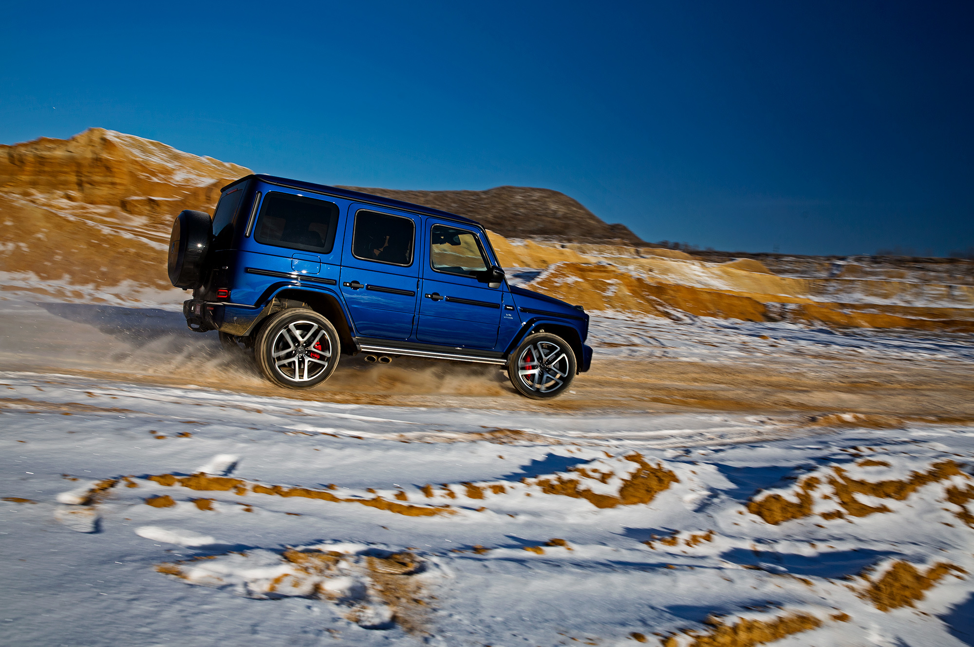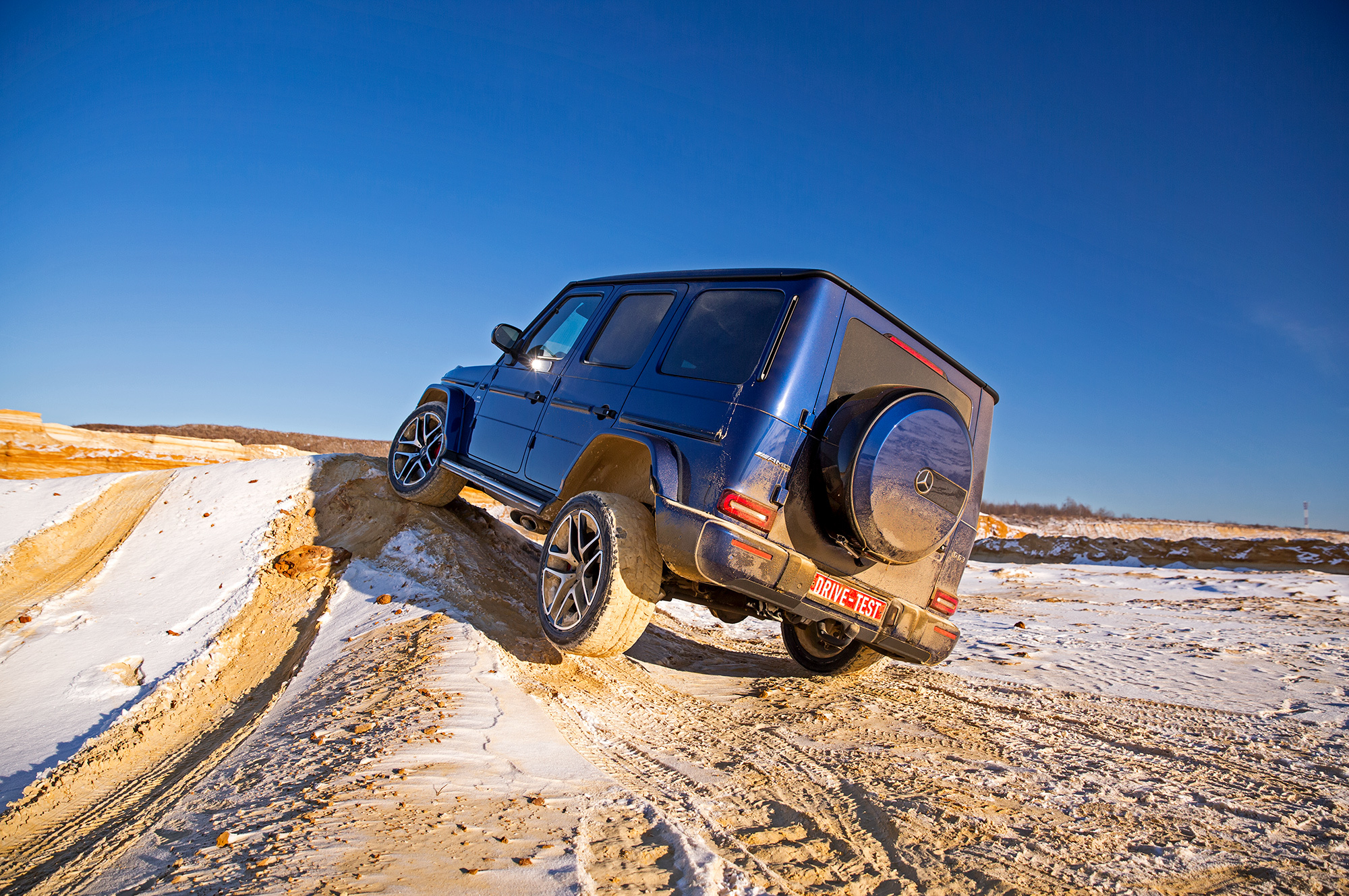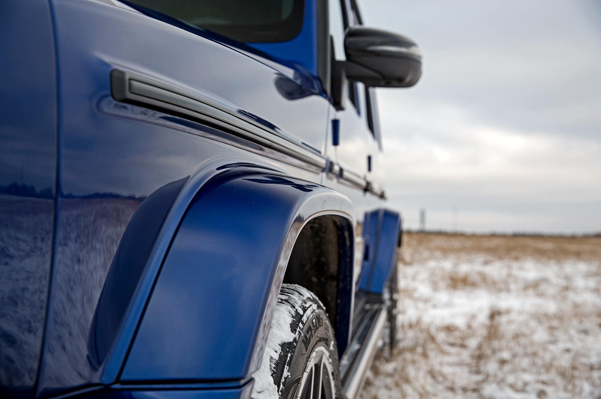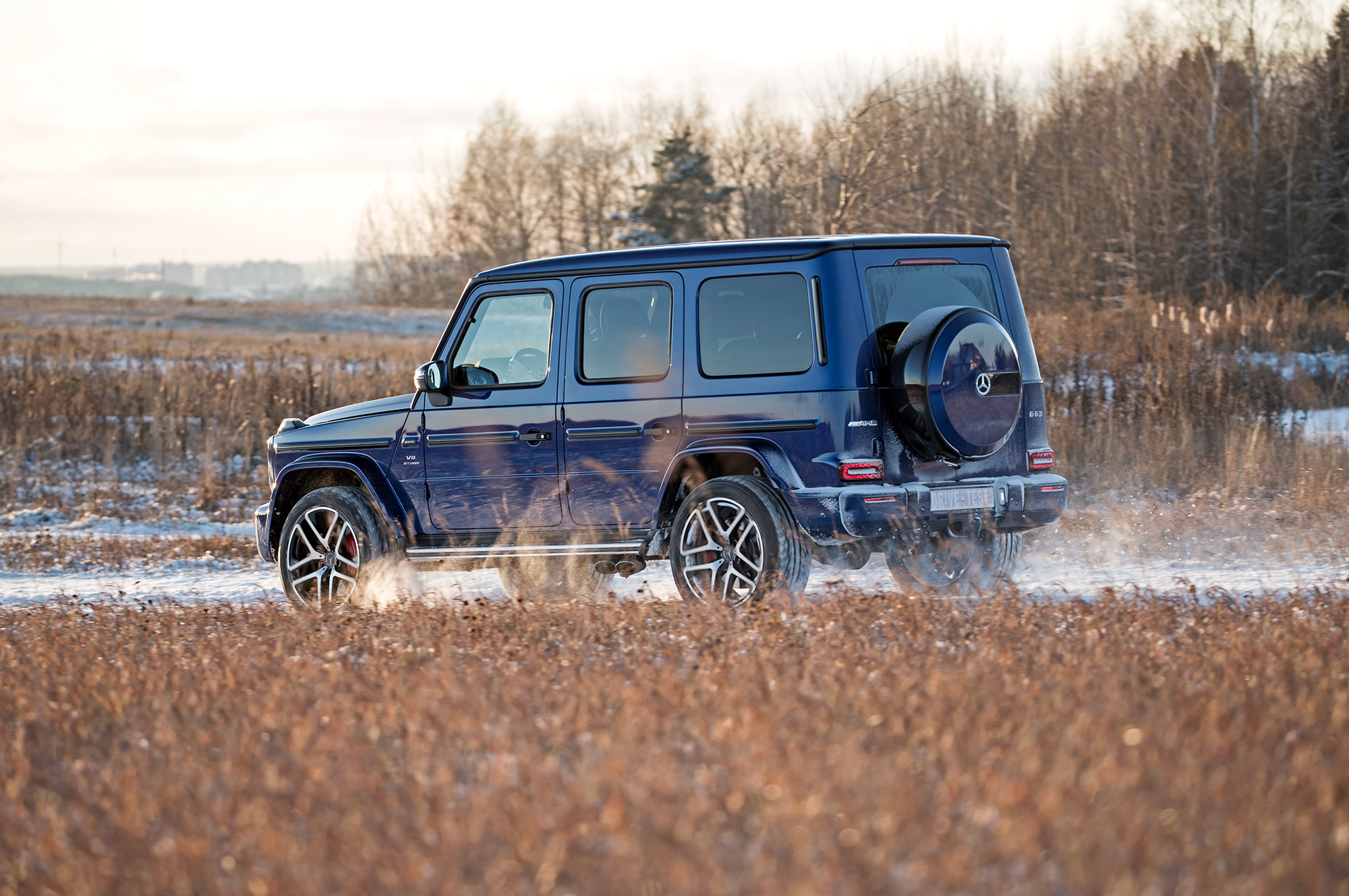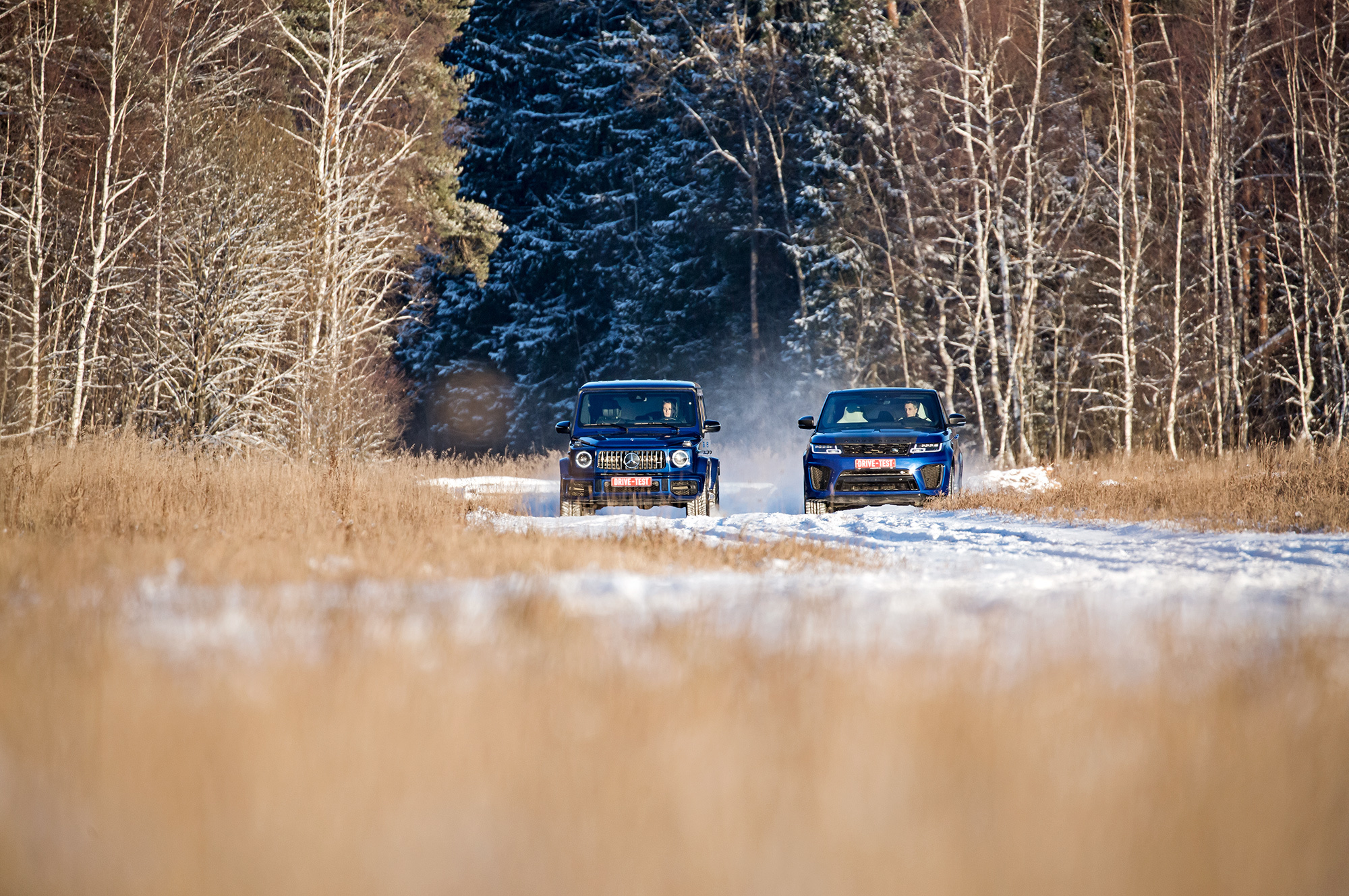 Непреодолимых препятствий на нашем пути не предвидится. Тонкий слой снега скрывает промёрзший песок. Но даже в таких условиях нужен разведчик, и на эту роль лучше подходит G-класс, благодаря меньшим свесам и непробиваемой пружинной подвеске. Недюжинная тяговитость битурбовосьмёрки освобождает от необходимости пользоваться «понижайкой» на сложных участках. Плавно наращивай паровозную тягу точным акселератором, и проблем не будет.