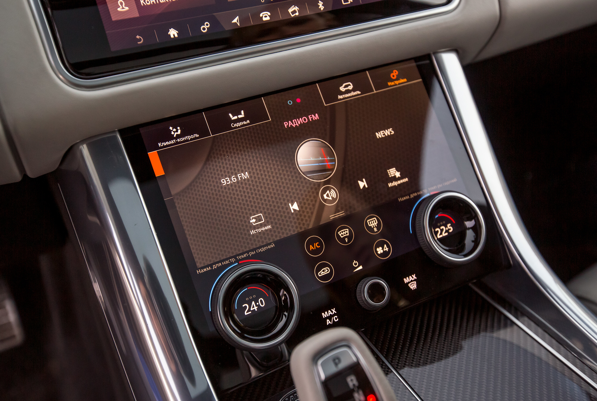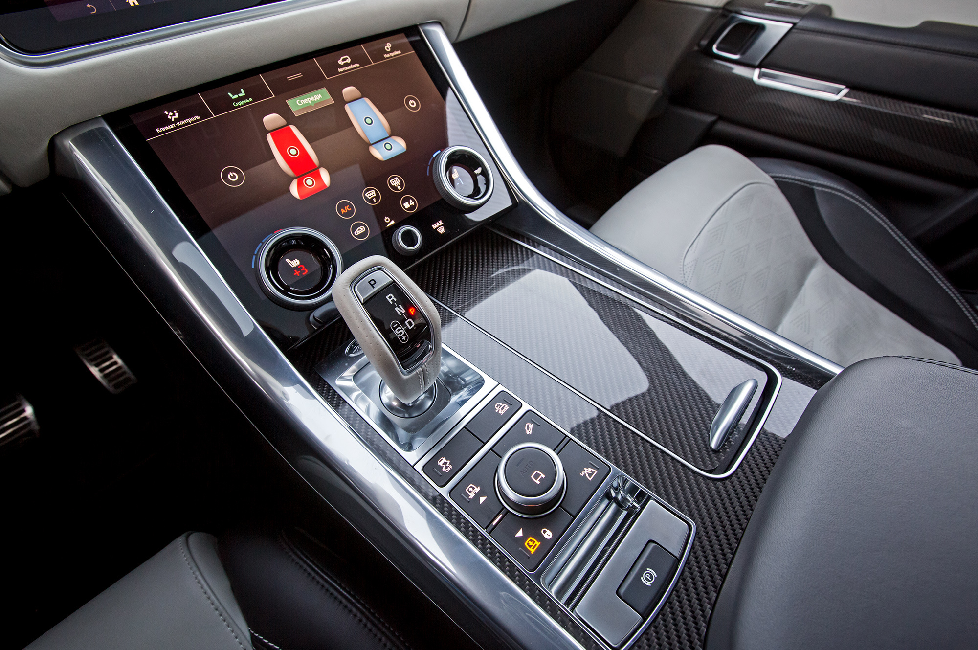 Чисто кнопочное управление климатом в Гелике предпочтительнее. То есть обрезиненные рукоятки для регулировки температуры в Рейндже удобны. Но для изменения скорости обдува и направления потока нужно обращаться к тачскрину. А он совершенно неожиданно может погаснуть, оставив водителя не только без контроля над погодой, но и без других полезных функций. Бывает, гаснут оба дисплея до перезапуска машины, хорошо, если разового. В Гелике экраны по старинке предназначены только для просмотра, а минус лишь в том, что их общее стекло бликует.