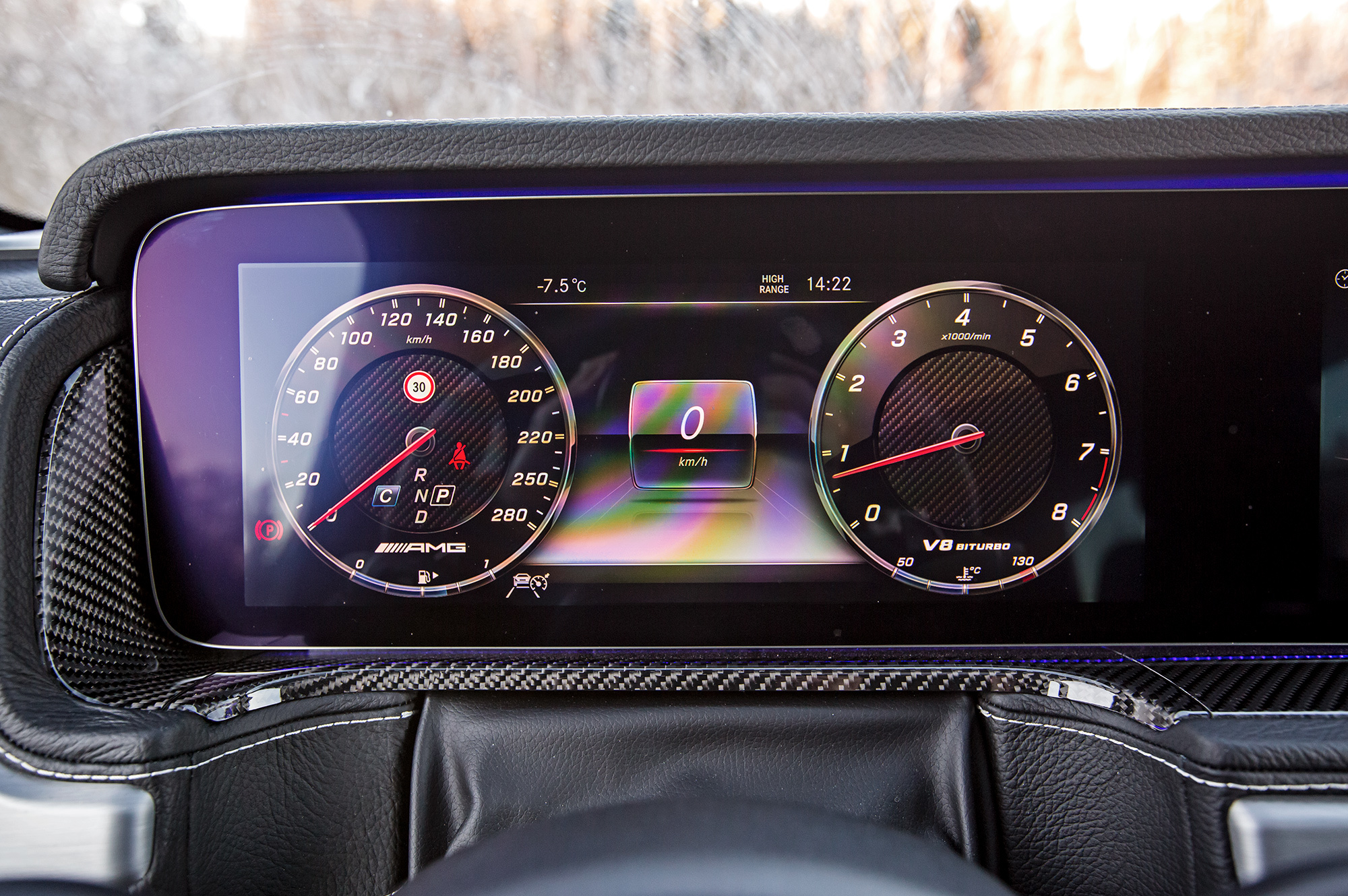 С переходом на wearables, носимые устройства, и из-за привычки смотреть время на телефоне я, признаться, испытываю трудности с чтением стрелочных часов. Что уж говорить про спидометры. В обеих машинах установлены экраны на месте приборной панели, и мне легче считывать показания скорости в Мерседесе. Штука в том, что с такой сумасшедшей динамикой на приборы вообще неудобно смотреть, а проекционным дисплеем радует только SVR.