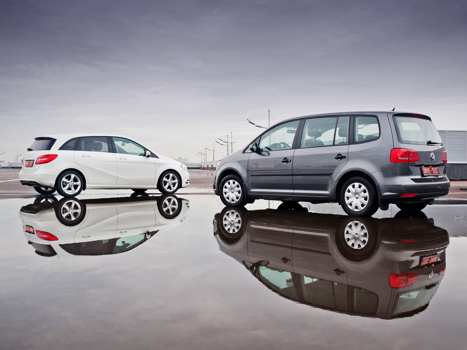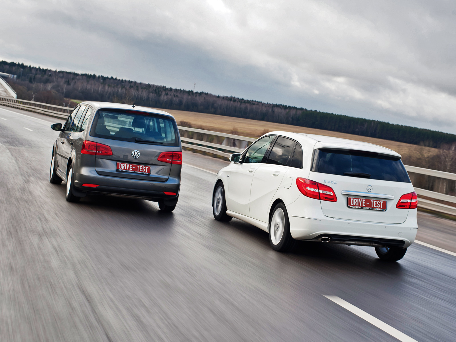 Во многом Mercedes B-класса и Volkswagen Touran схожи — оба воспринимаются добротными автомобилями, едут породисто и стоят своих денег. Однако разница фундаментальная — находясь в одном классе, они созданы для разных потребителей. Пятидверка из Штутгарта для тех, кто хочет повышенной комфортности и простора, но не согласен рулить автобусом. В B-классе настолько легковая посадка, что складывается ощущение, будто управляешь обычным хэтчбеком. Но придётся пожертвовать повышенной практичностью. А Touran — машина для дела. Под автобусной внешностью и за демократичным именем скрывается талантливый друг семьи, который даже в базовом исполнении обрадует всем тем, ради чего он и был создан. Одно но — в таких, как Touran, редко влюбляются.